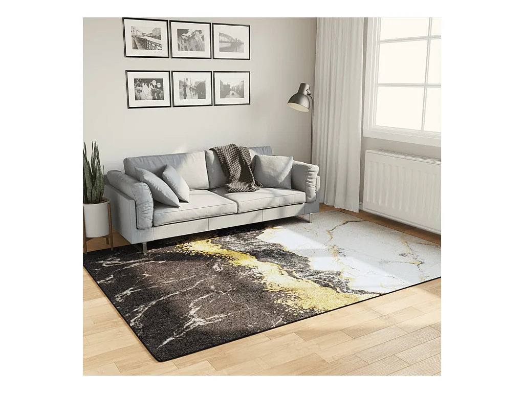 Alfombra lavable antideslizante negro y dorado 160x230 cm ES89549