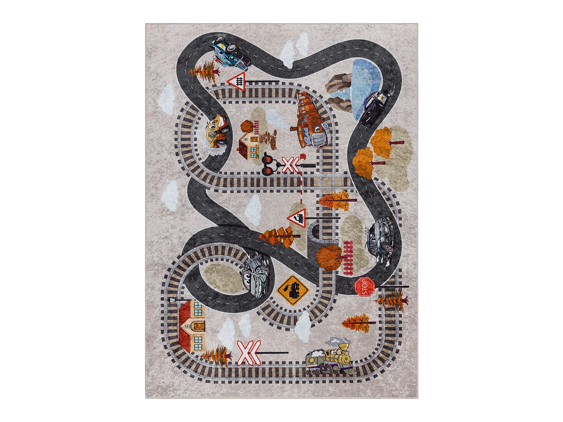 Alfombra lavable JUNIOR 51986.803 Vías del tren, locomotora para niñ 80x150 cm