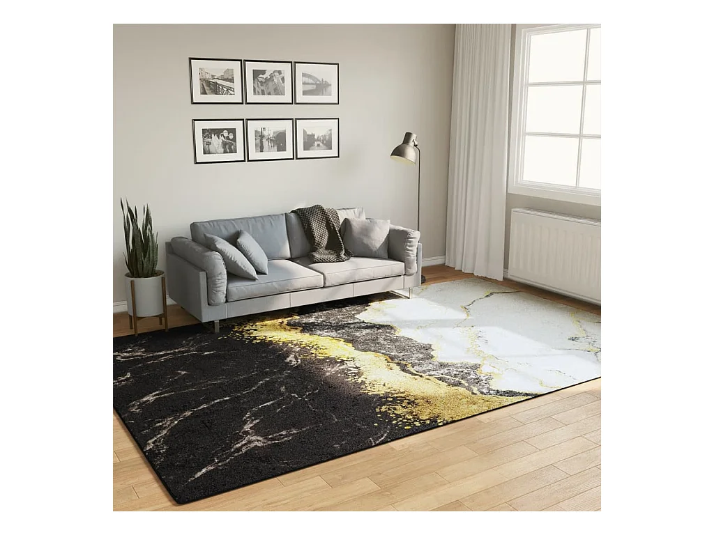 Alfombra lavable negra y dorada 400x300 cm antideslizante