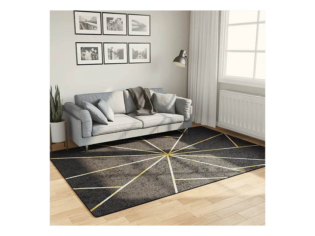 Alfombra lavable antideslizante 160x230 cm negra y dorada