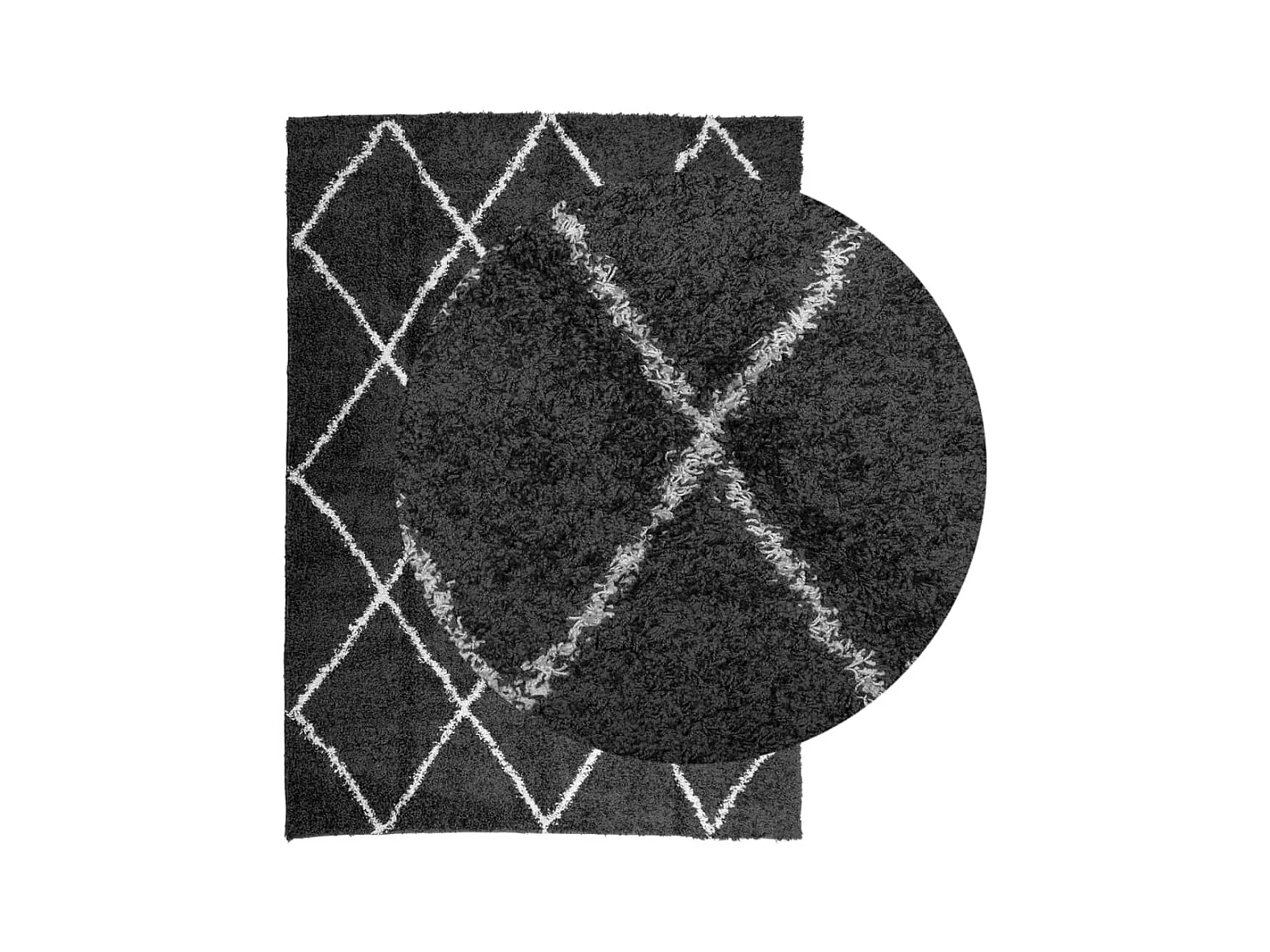 Alfombra moderna de pelo largo en color negro y crema de 200 x 280 cm