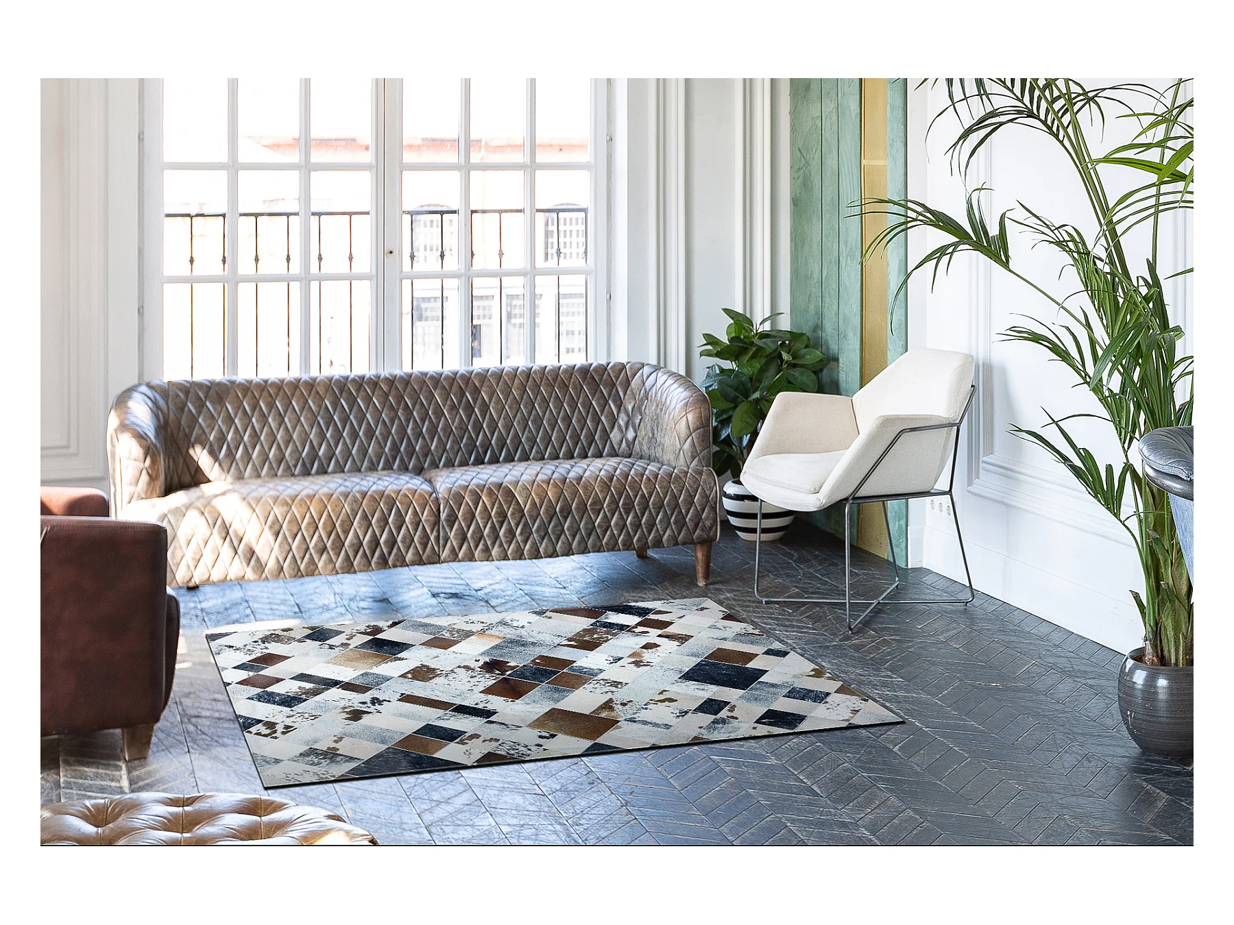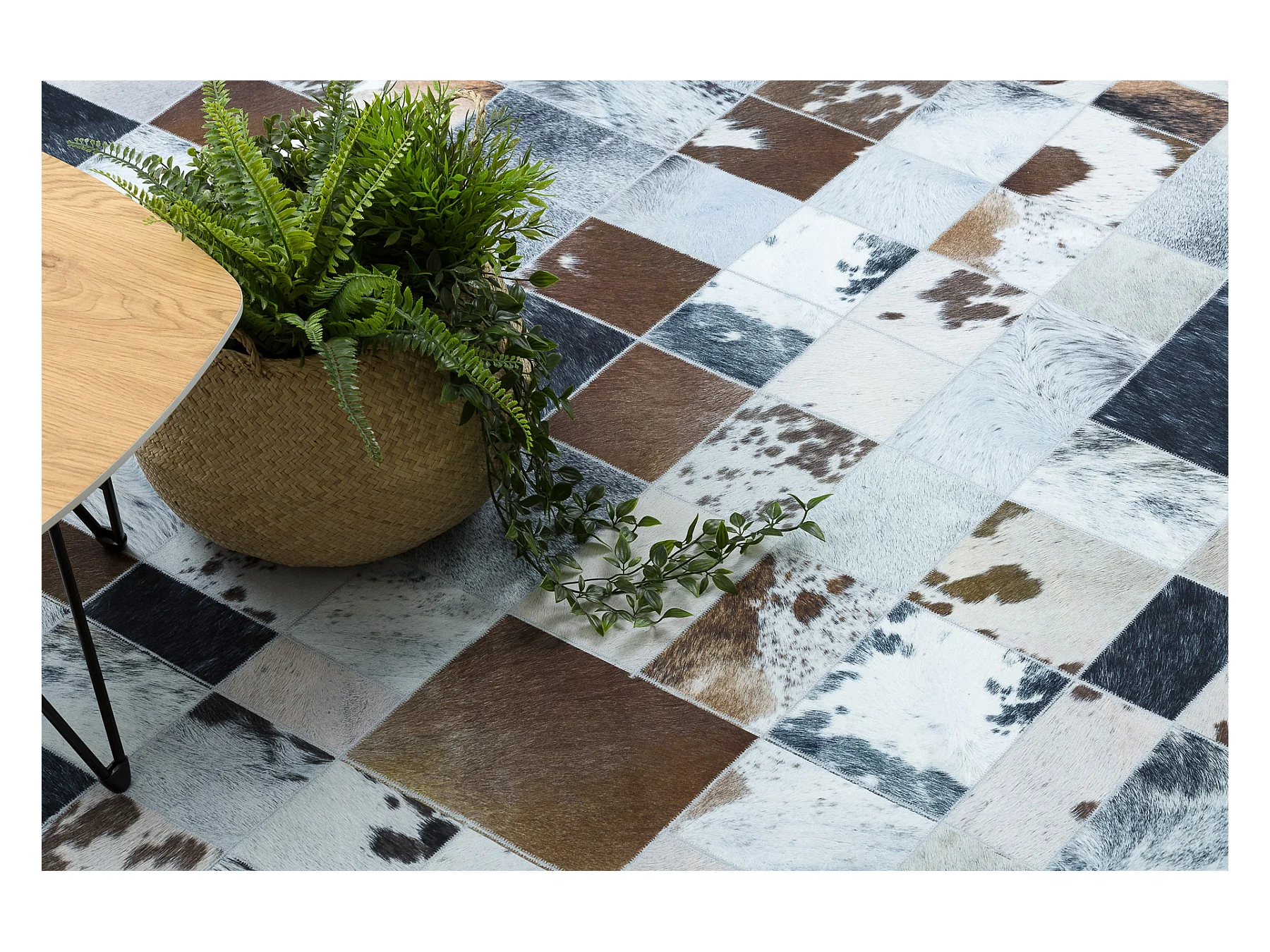 Alfombra PATCHWORK 21720 beige / marrón - Piel de vacuno, Diamantes 160x230 cm