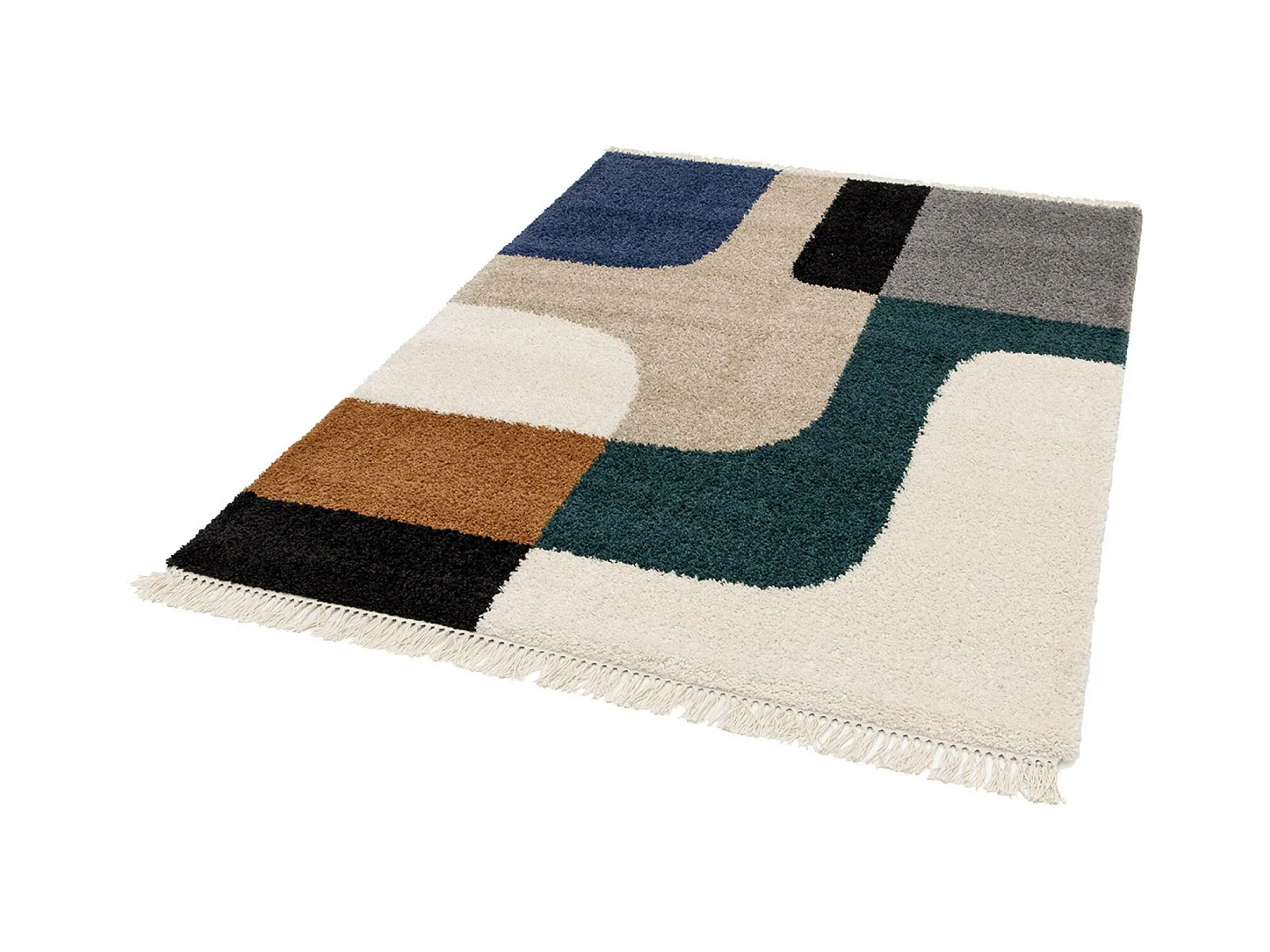 Alfombra interior estilo shaggy bereber crema y multicolor