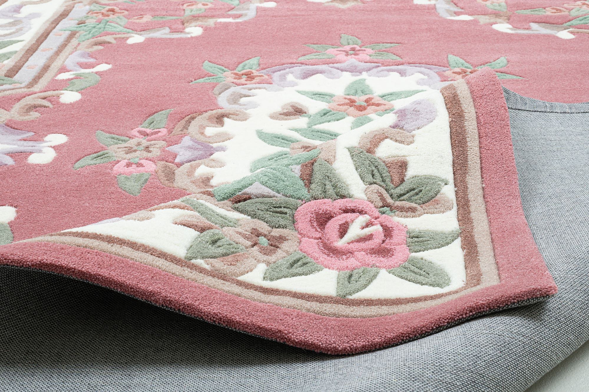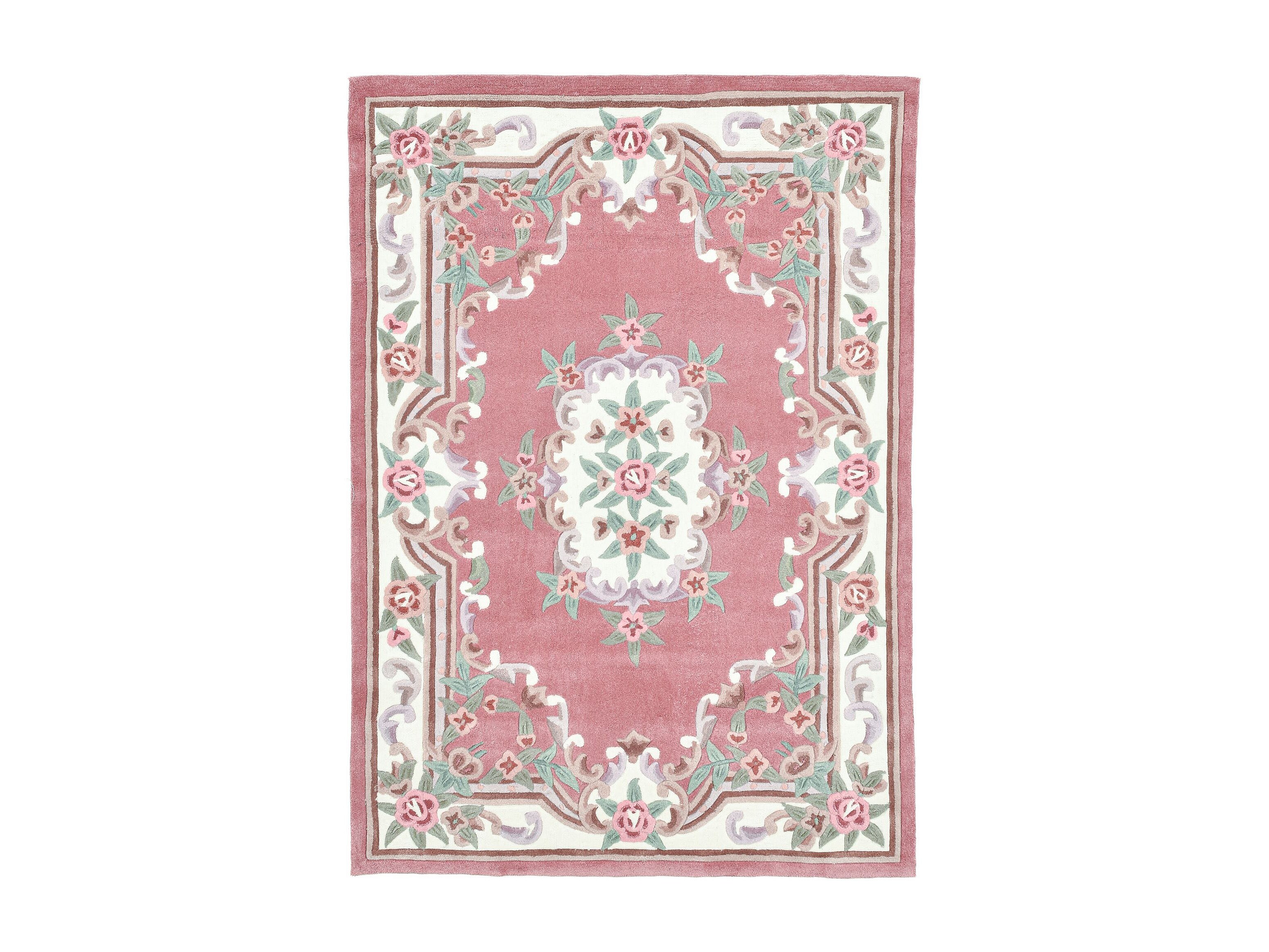 Alfombra tejida a mano con borde en diseño Aubusson 190x290 cm Rosa Ming