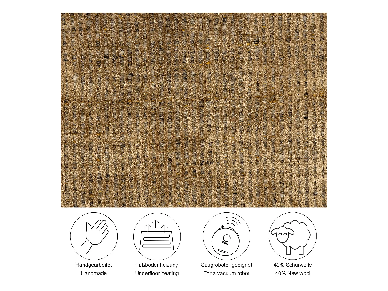 Alfombra UNI a rayas de viscosa y lana 40x60 cm Oro Venus
