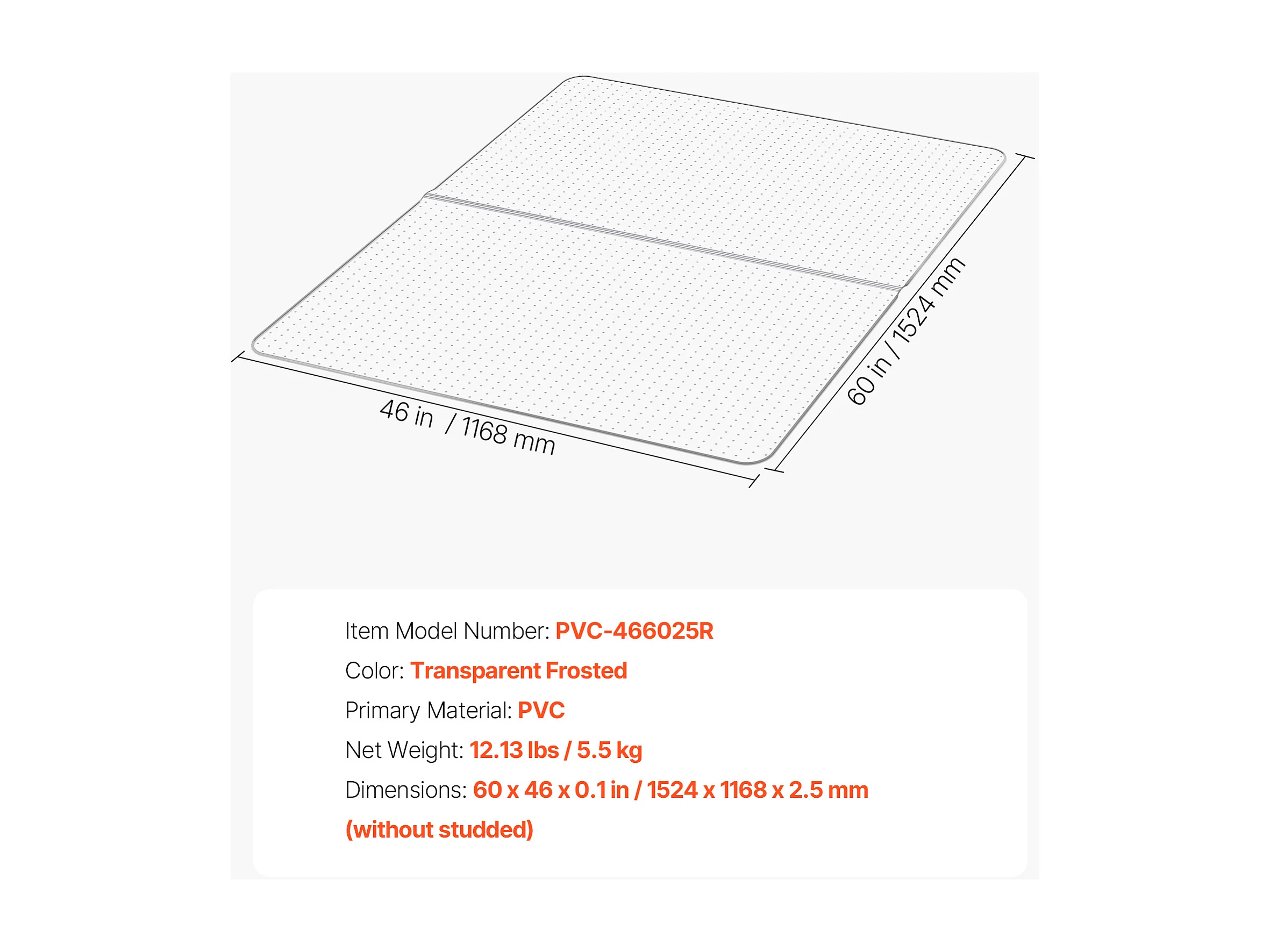 Alfombrilla de Silla de Oficina SucceBuy de 152,4 x 116,8 cm, Protector de Suelo para Alfombra de Pelo Corto, Transparente, Antideslizante y Fácil de Limpiar