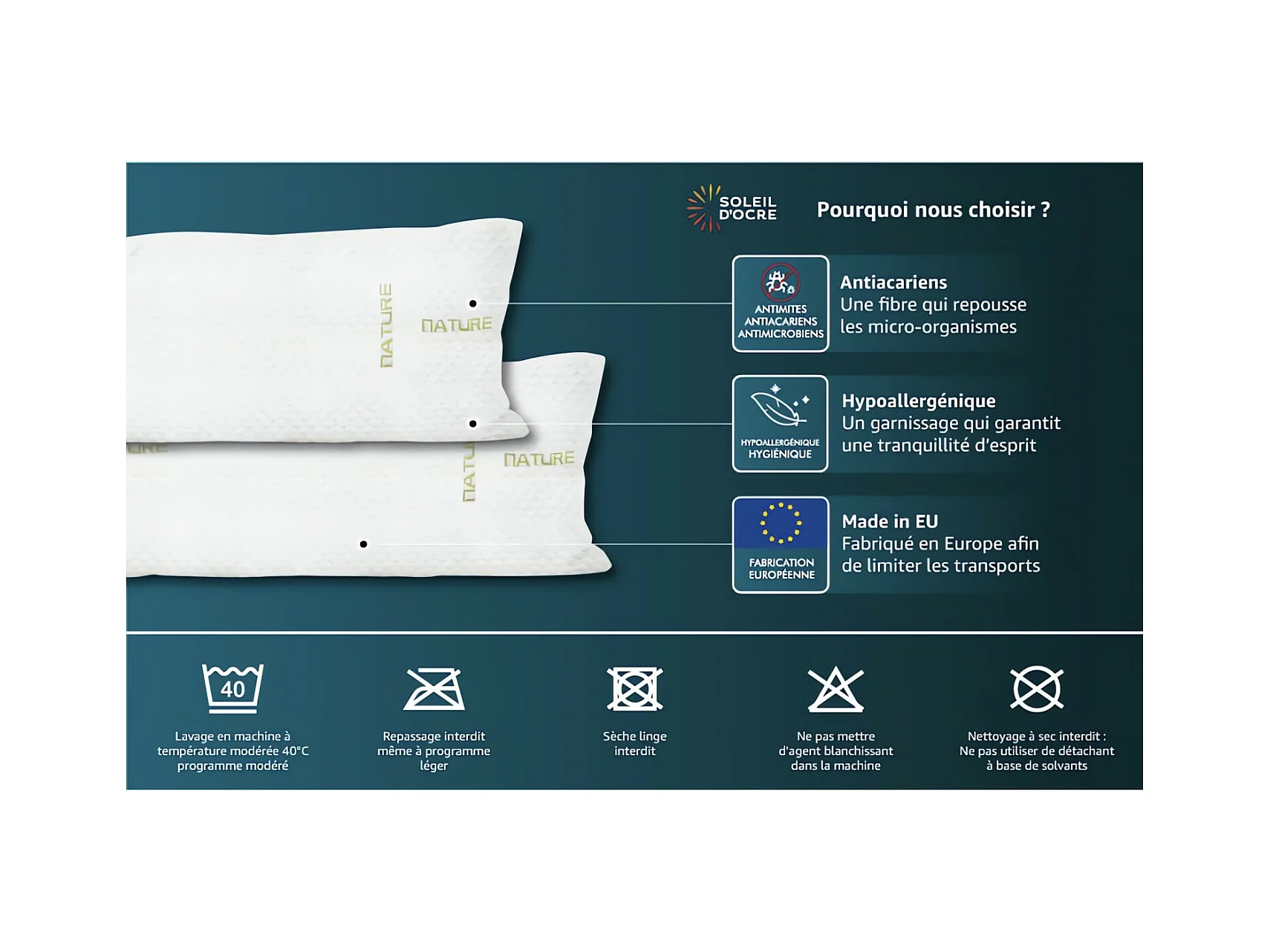 Cojín VANCOUVER 90 cm - antiácaros - 100% Poliéster