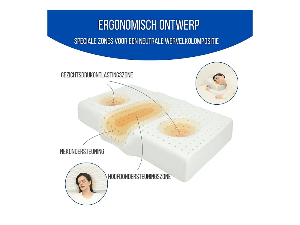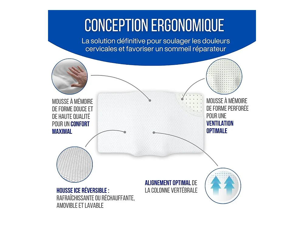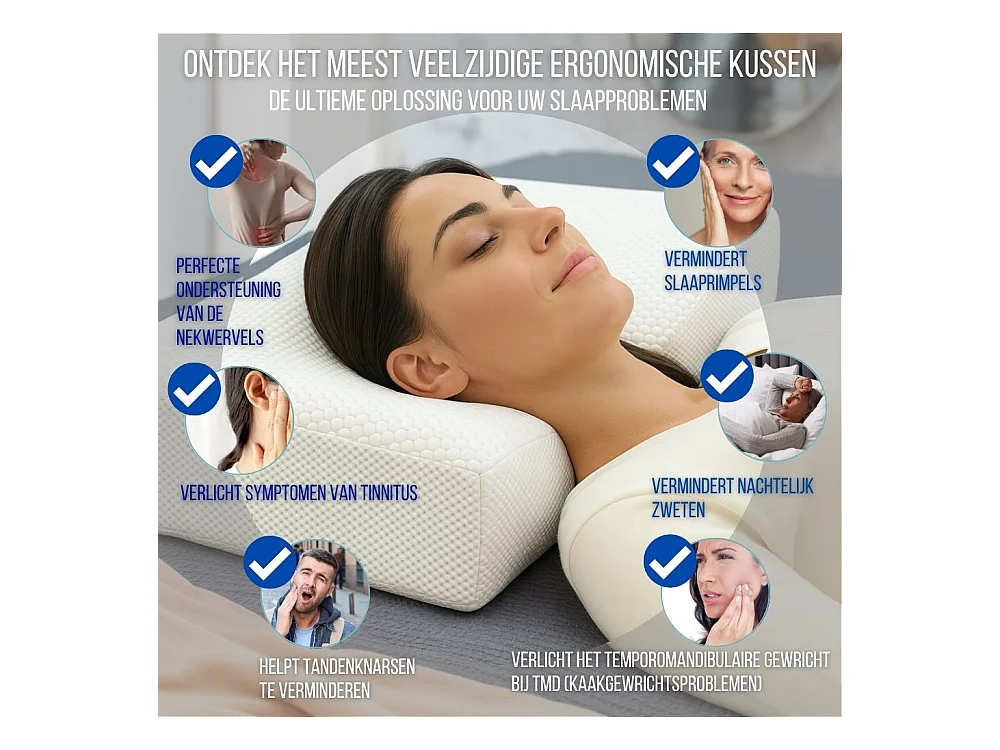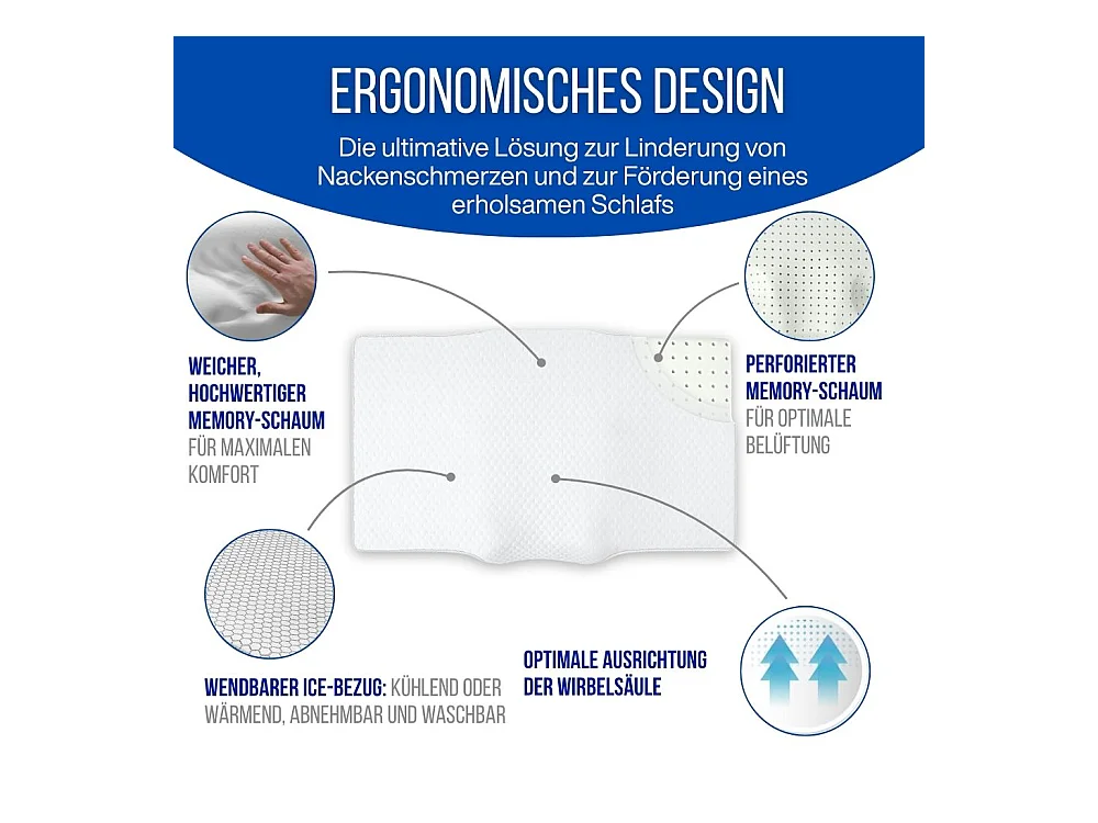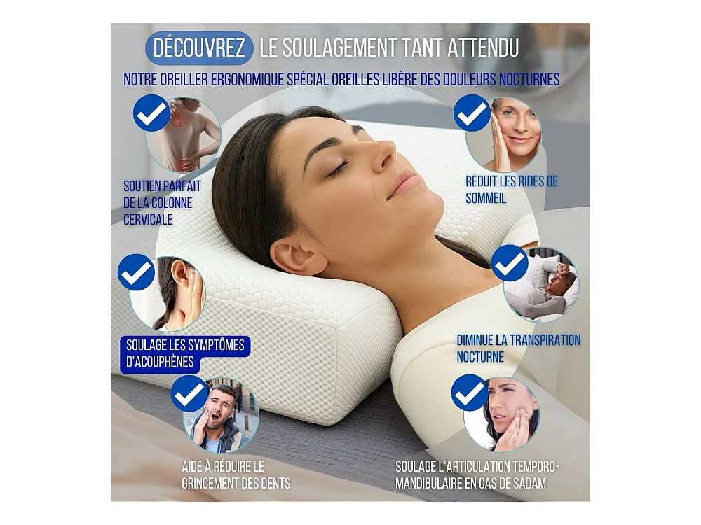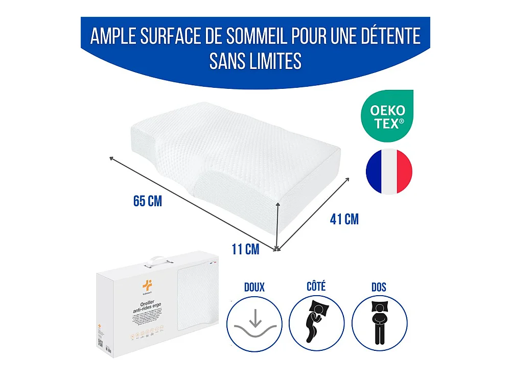 Almohada Ergonómica Antiarrugas, Antiacúfenos - Extra Grande - 65x42x10 - ERGO