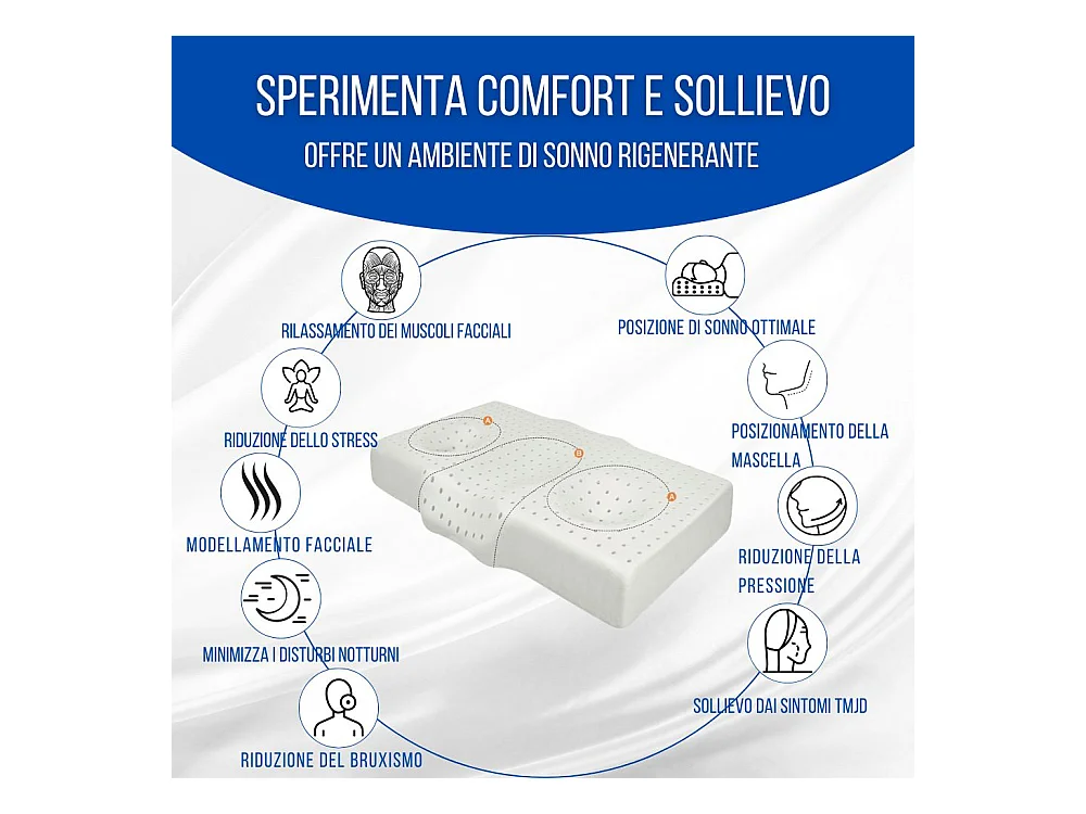 Cojín Dmunar, Almohada ergonómica "jabón" en Memory Foam perforado, 100% Made in Italy, Hipoalergénico y Transpirable, 71x41xh15 cm, Individual