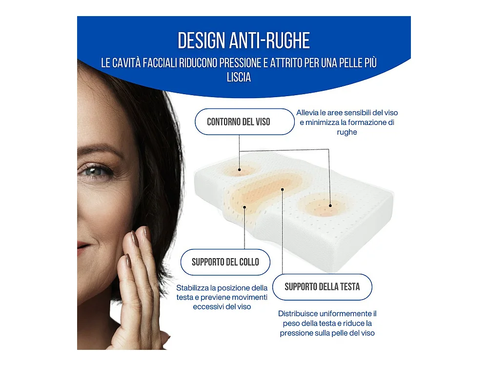 Cojín Ddimarc, Almohada ergonómica "jabón" en Memory Foam perforado, 100% Made in Italy, con revestimiento de iones de plata, 71x41xh13 cm, Individual