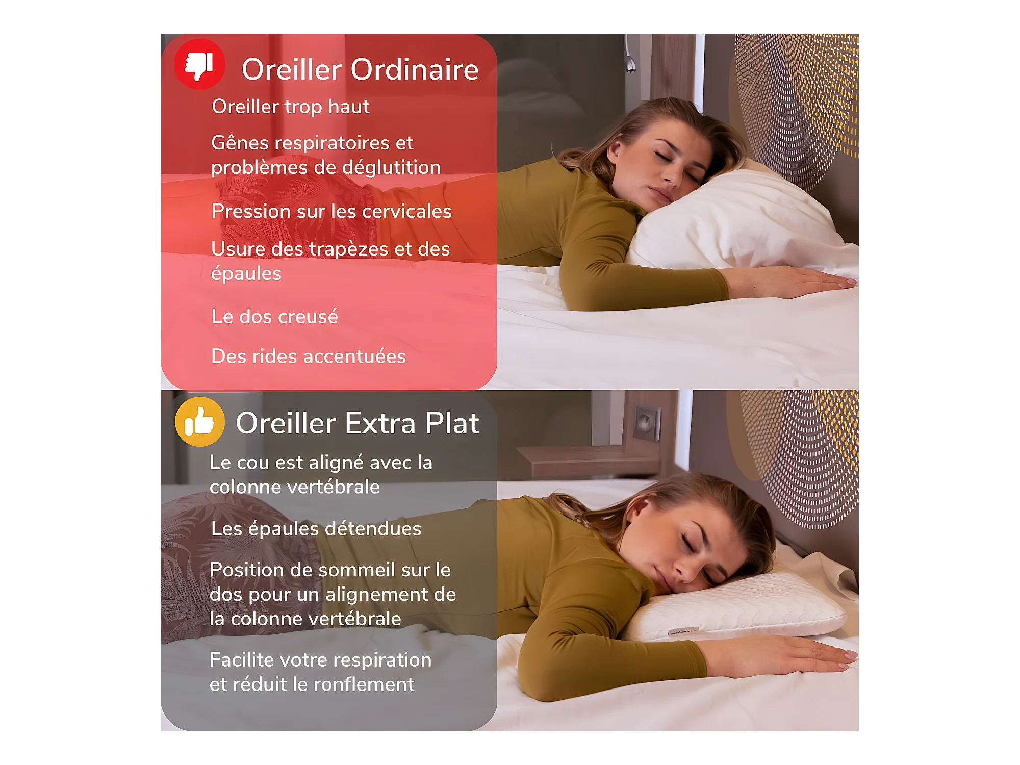 Almohada EXTRA PLANA para Personas que Duermen Boca Abajo L y Funda de Satén Extra – 58x38x7 - INPHYSIO