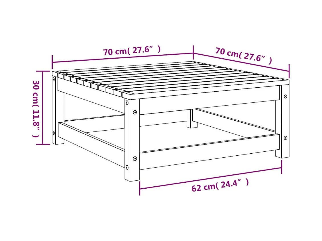 Aloys Taburete de jardín madera maciza de pino blanco 70x70x30 cm