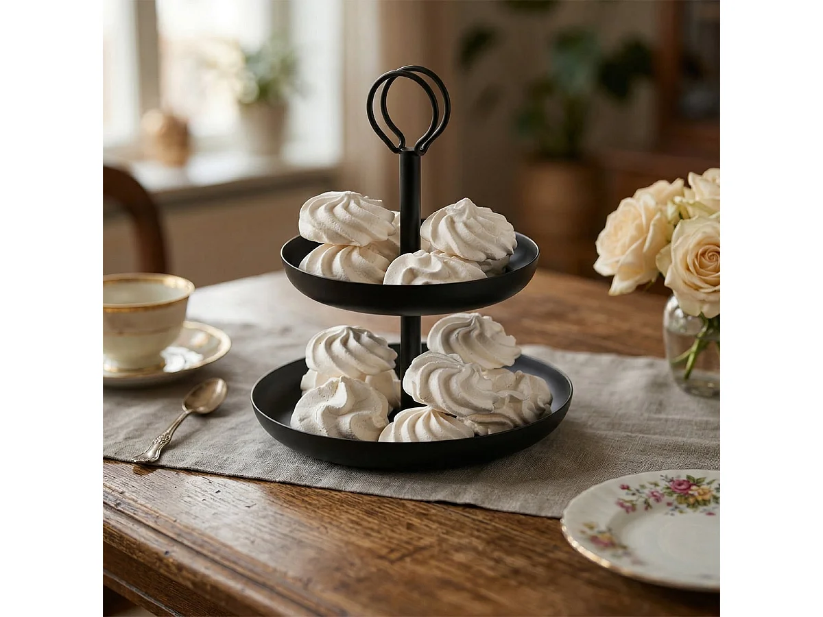 Alzata de metal de mesa con 2 niveles Nik - Negro