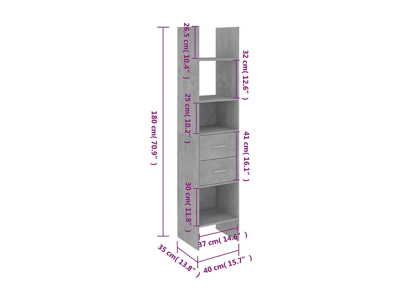 Ammon Estantería de madera contrachapada gris hormigón 40x35x180 cm