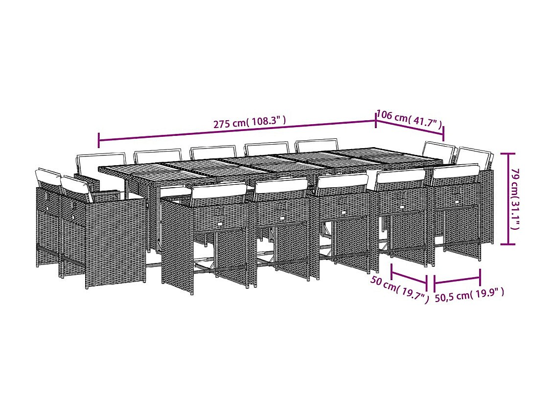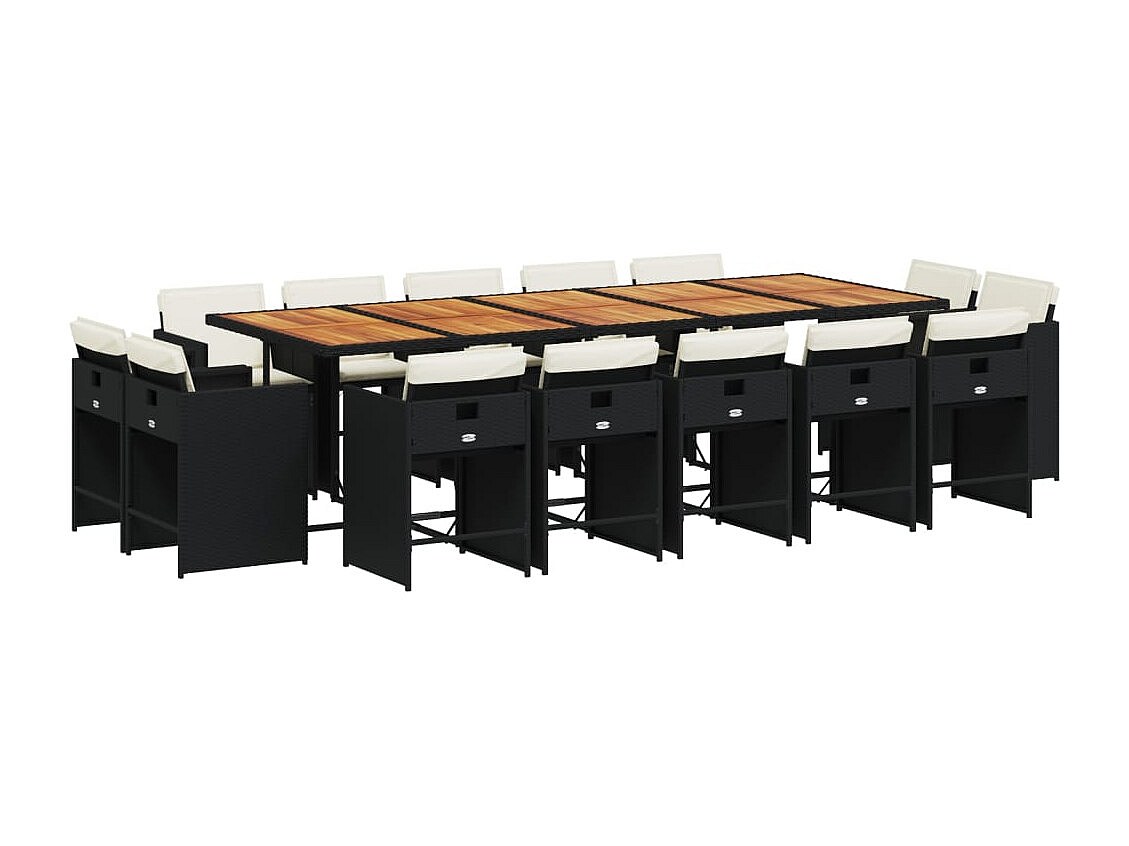 An Daingean Set comedor de jardín con cojines 15 pzas ratán sintético negro