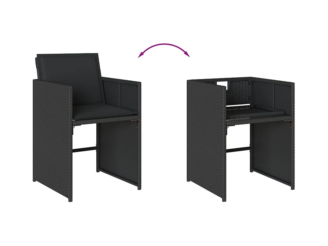 Steno Set de comedor jardín 11 pzas con cojines ratán sintético negro