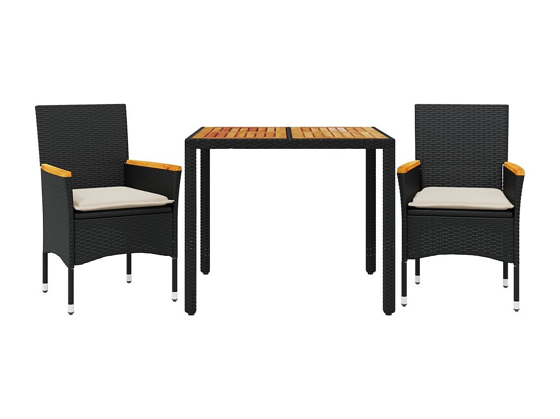 Motta Sant'Anastasia Set de comedor jardín 3 pzas con cojines ratán PE acacia negro