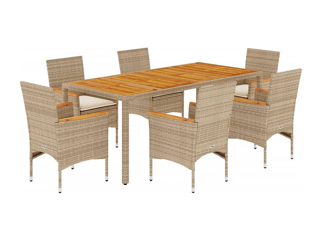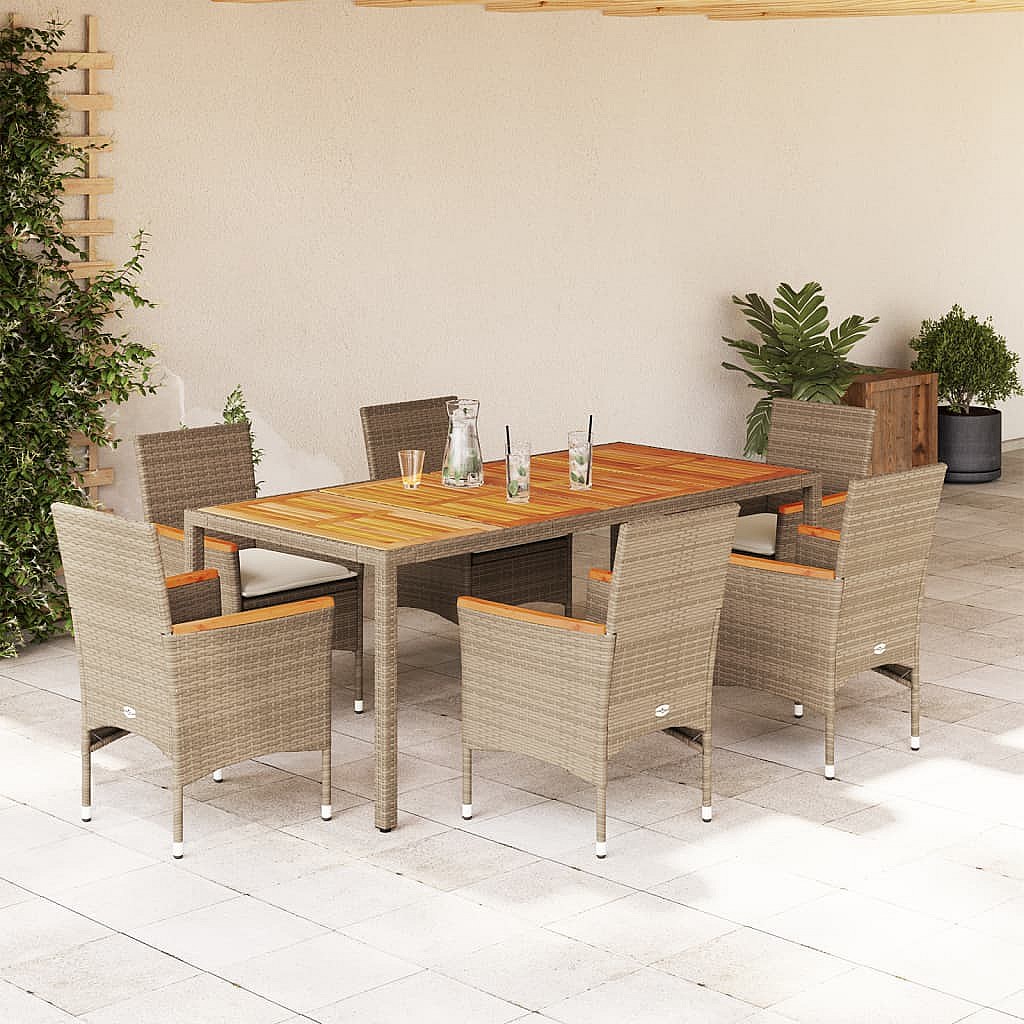 Ana Luisa Set de comedor jardín 7 pzas con cojines ratán PE acacia beige
