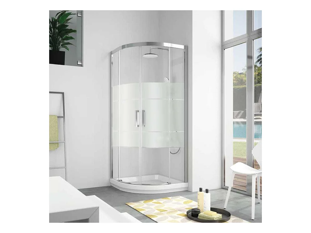 Angular de ducha 2 Fijos 50cm + 2 Puertas Correderas 90x90 90x90 Semicircular S400 con Cristal serigrafiado radio 50cm