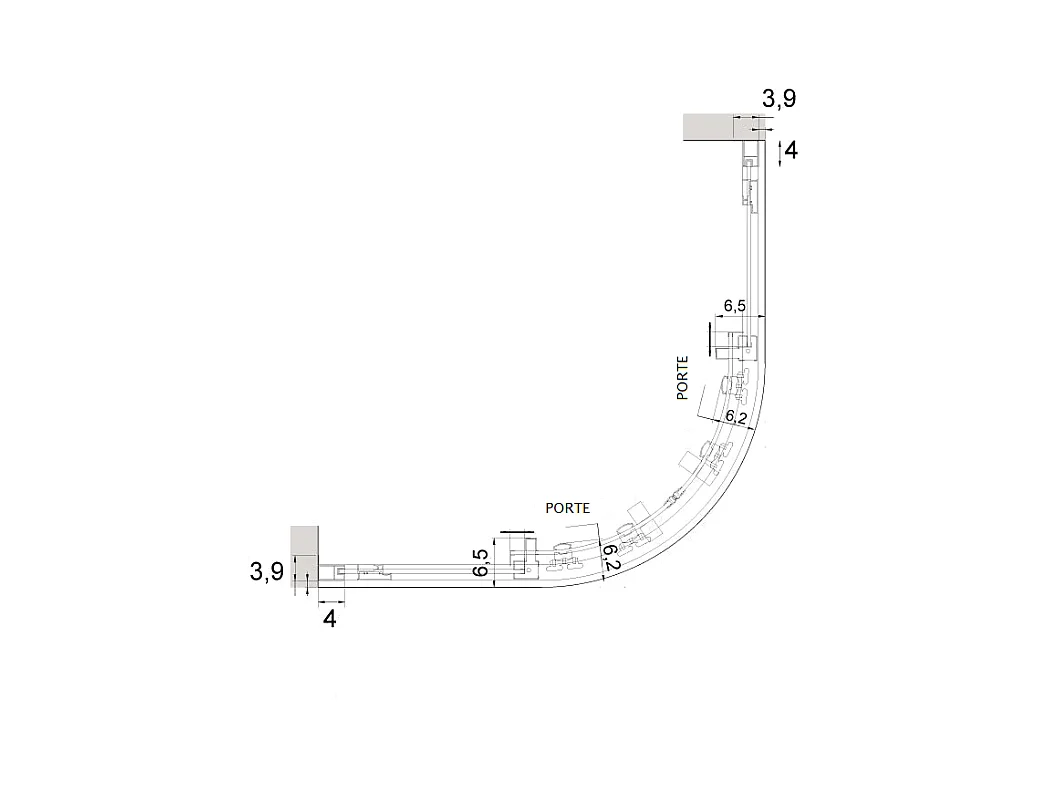 Angular de ducha 2 Fijos 50cm + 2 Puertas Correderas 90x90 90x90 Semicircular S400 radio 50cm
