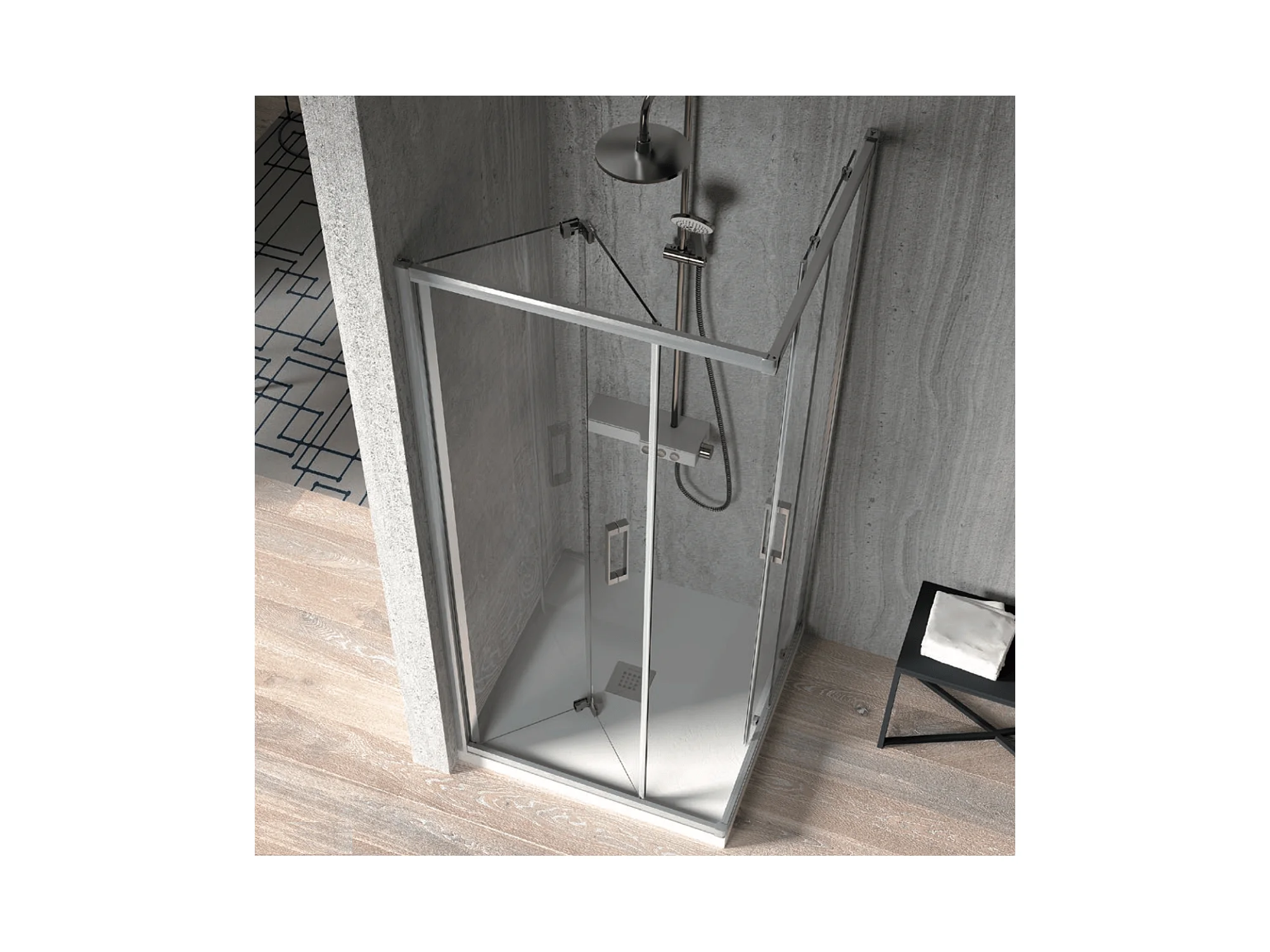 Angular de ducha Puerta Plegable 80 cm + Puerta Corredera 70 cm S300