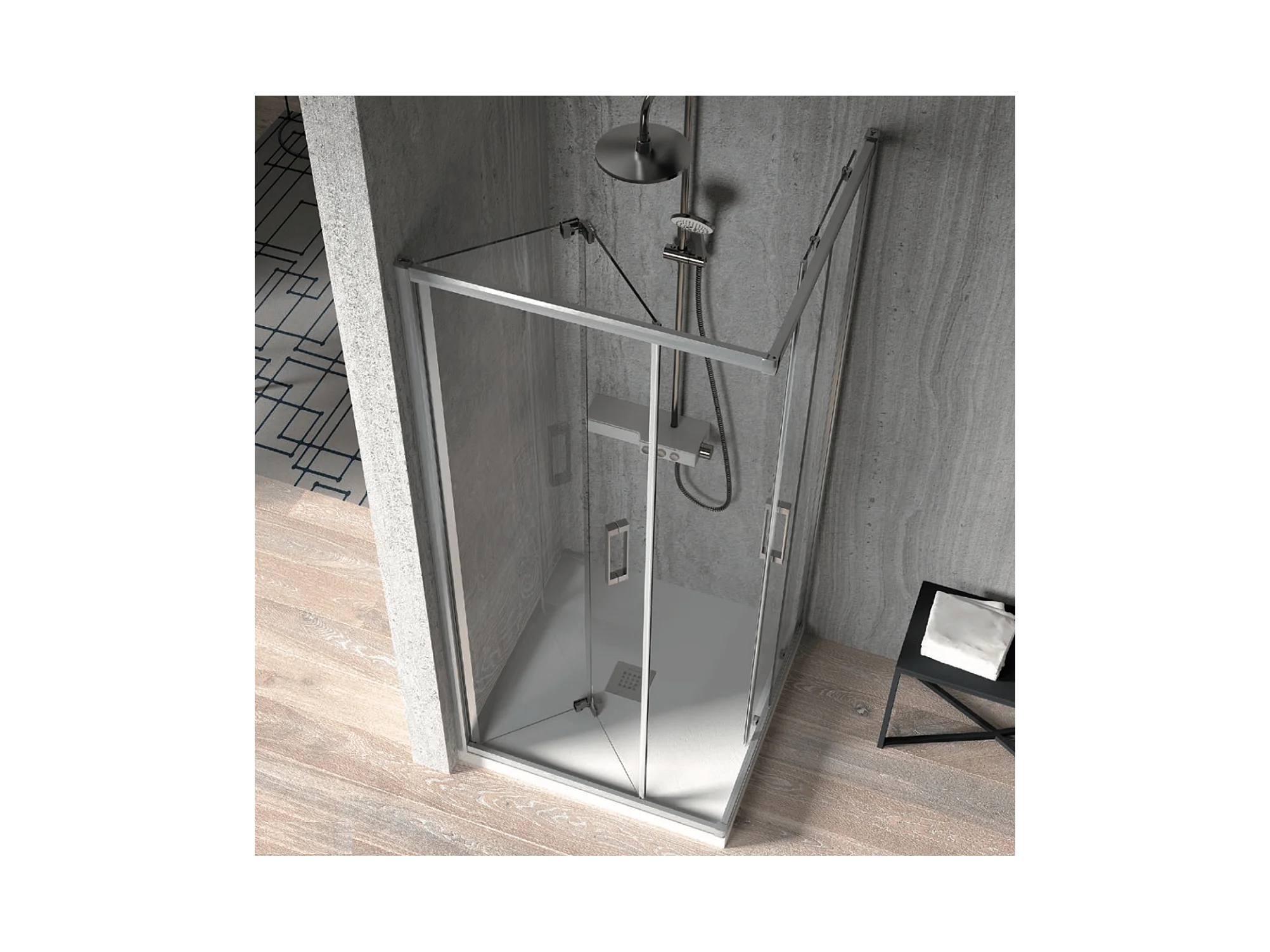 Angular de ducha Puerta Plegable 90 cm + Puerta Corredera 90 cm S300