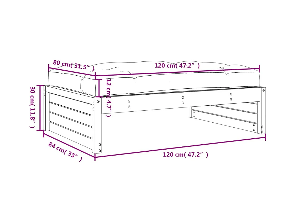 Anne-Camille Taburete de jardín madera maciza de pino negro 120x80 cm