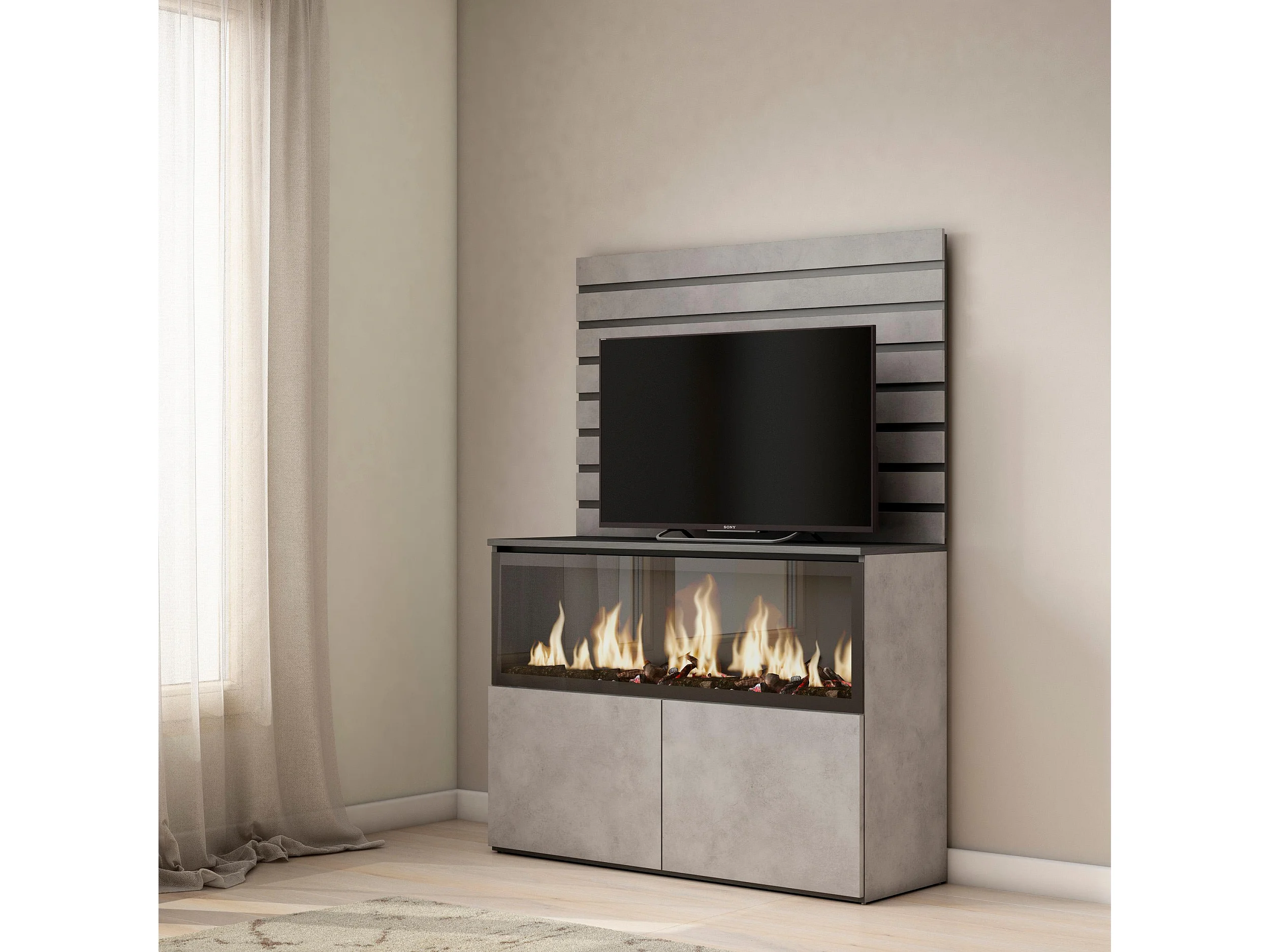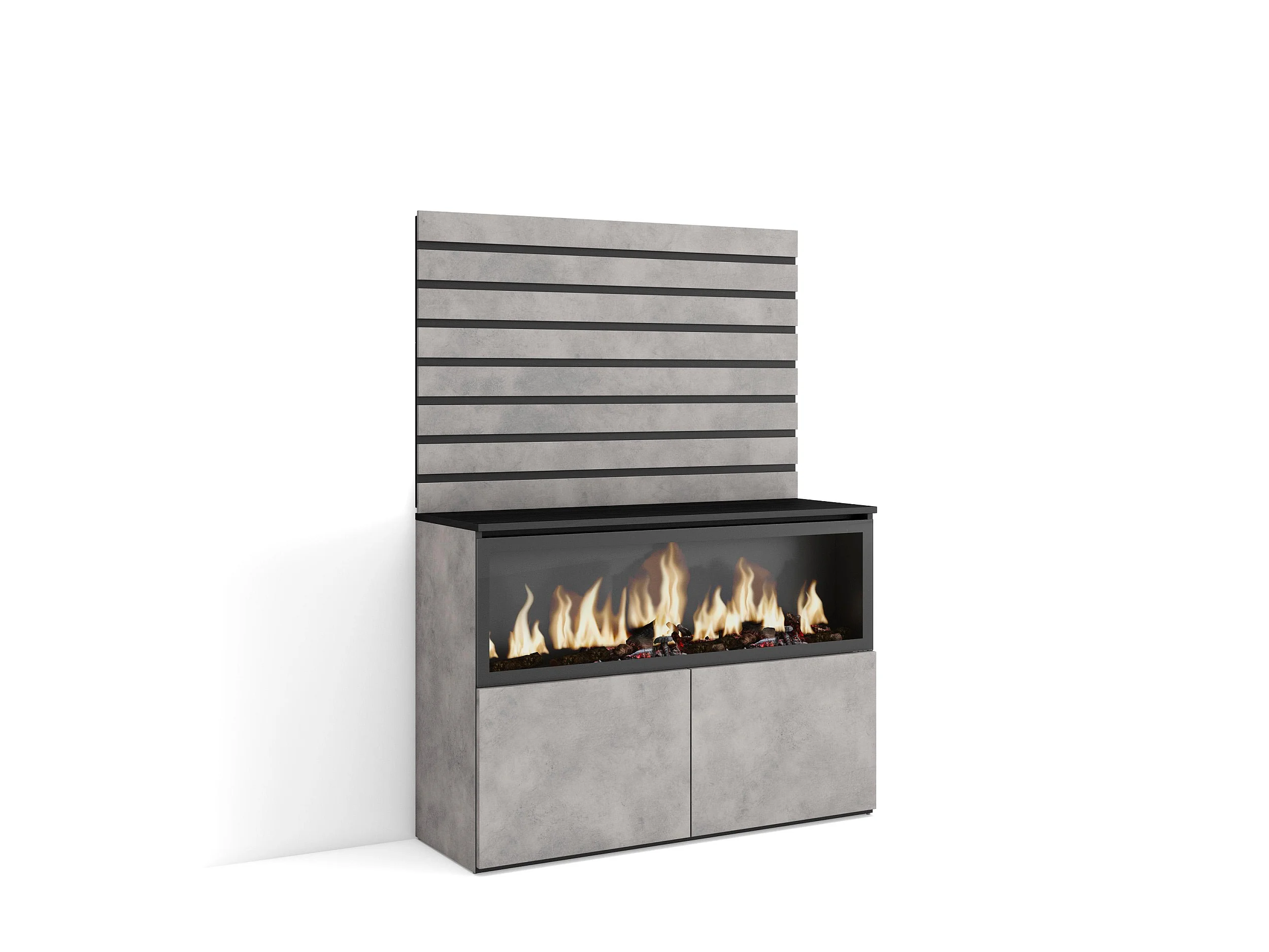 Aparador, 107x35x145cm, Dormitorio, habitación, Chimenea eléctrica XXL, Cemento