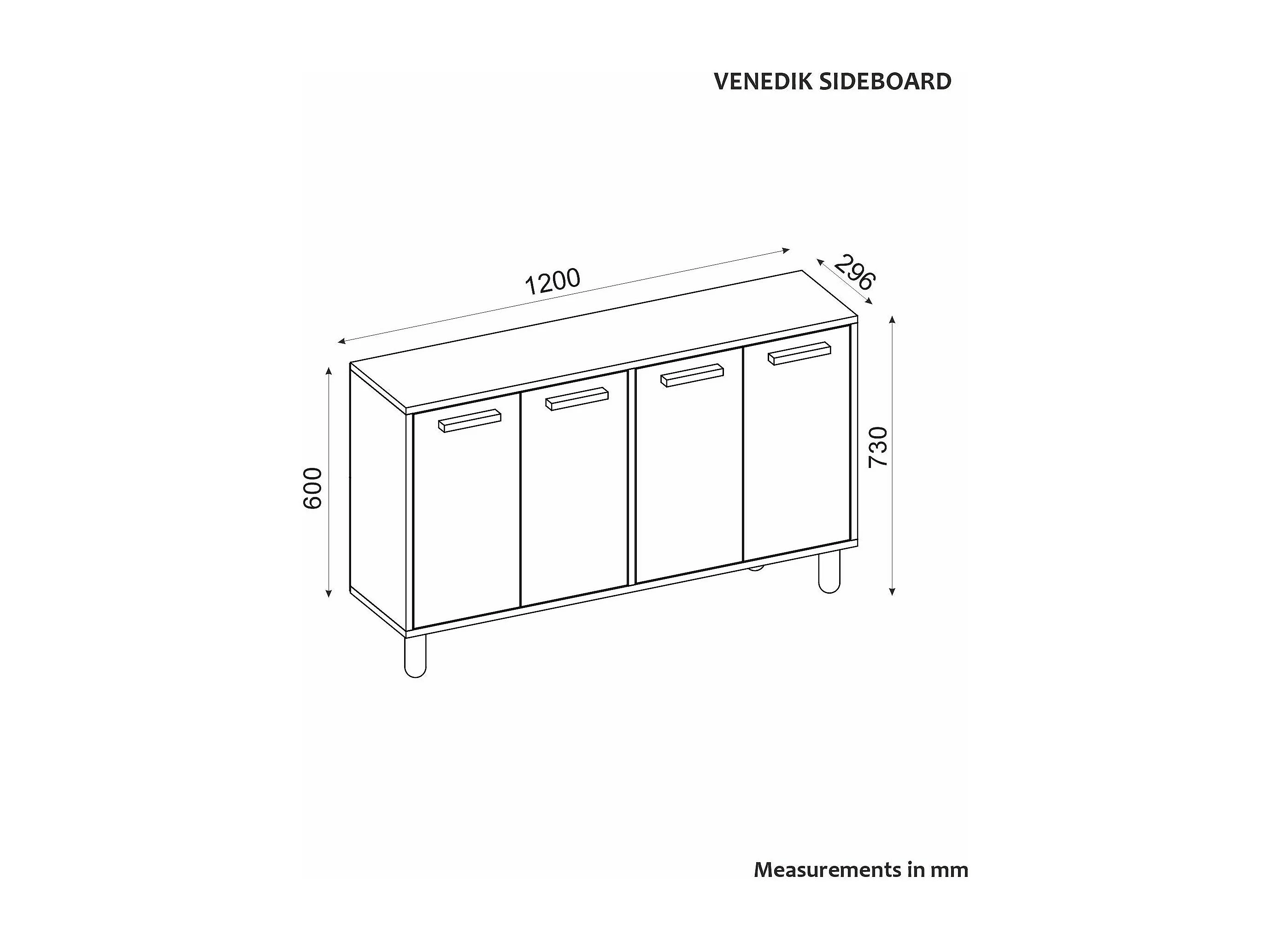 Aparador – 120cm x 80cm x 29,6cm – Roble blanco y zafiro – MDF