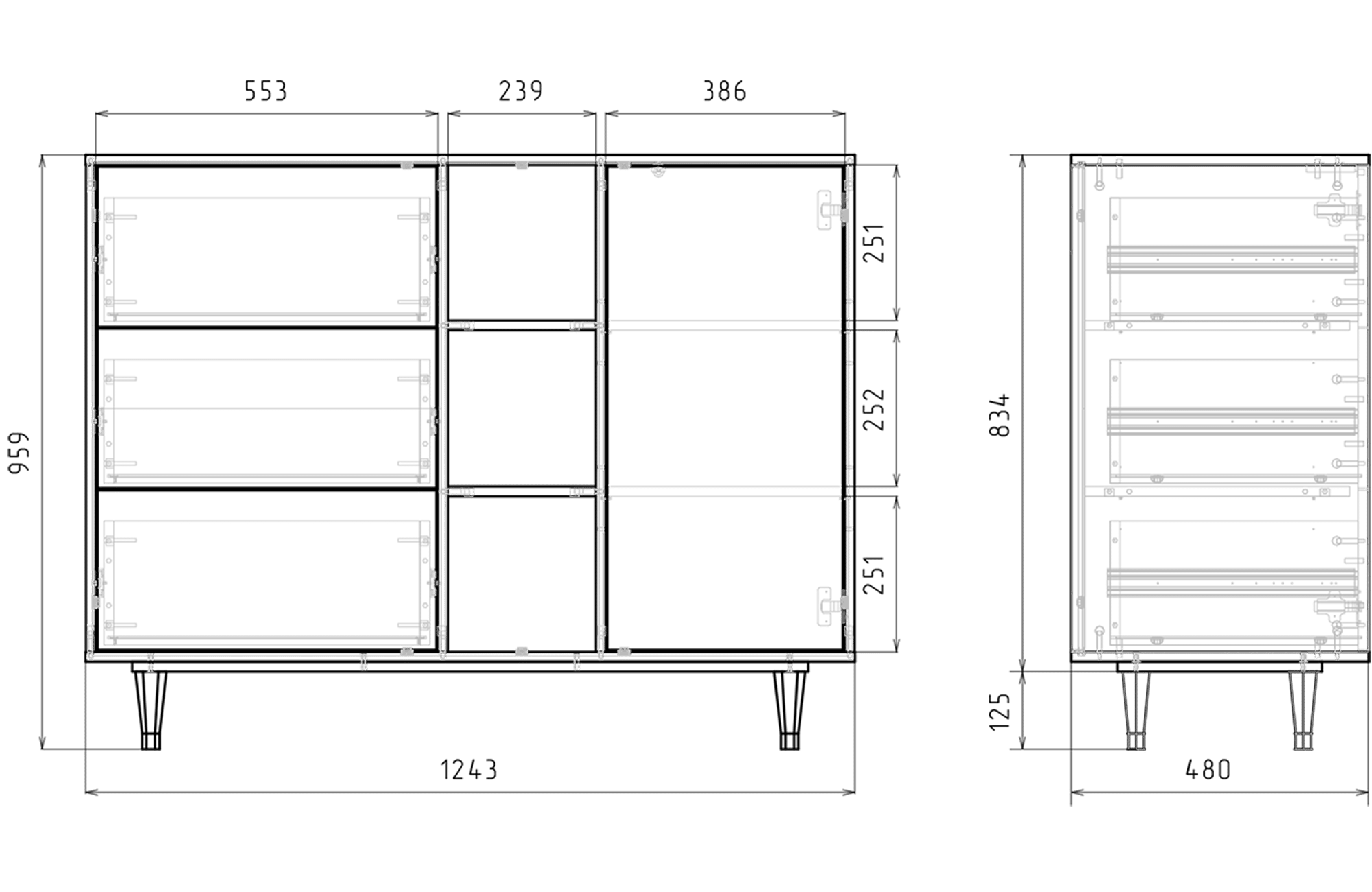 Aparador - 125x98x48 cm - BS2 - Pastel Sunrise, Nogal