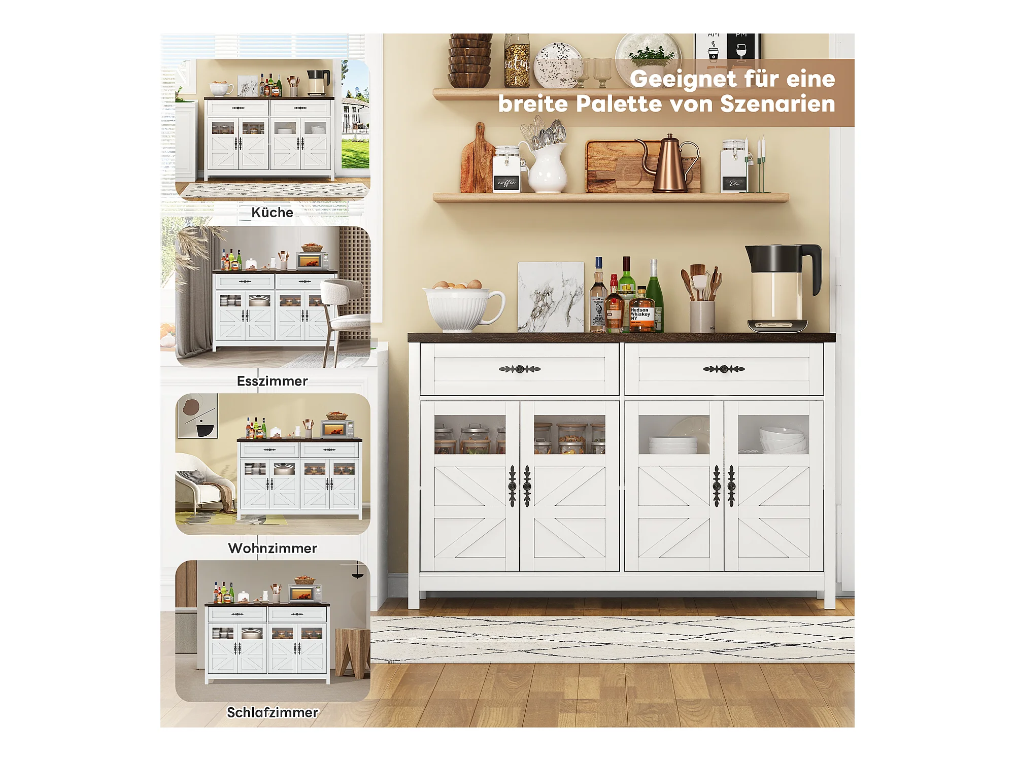 Aparador 140cm MDF 4 puertas 2 cajones almacenaje salón cocina blanco