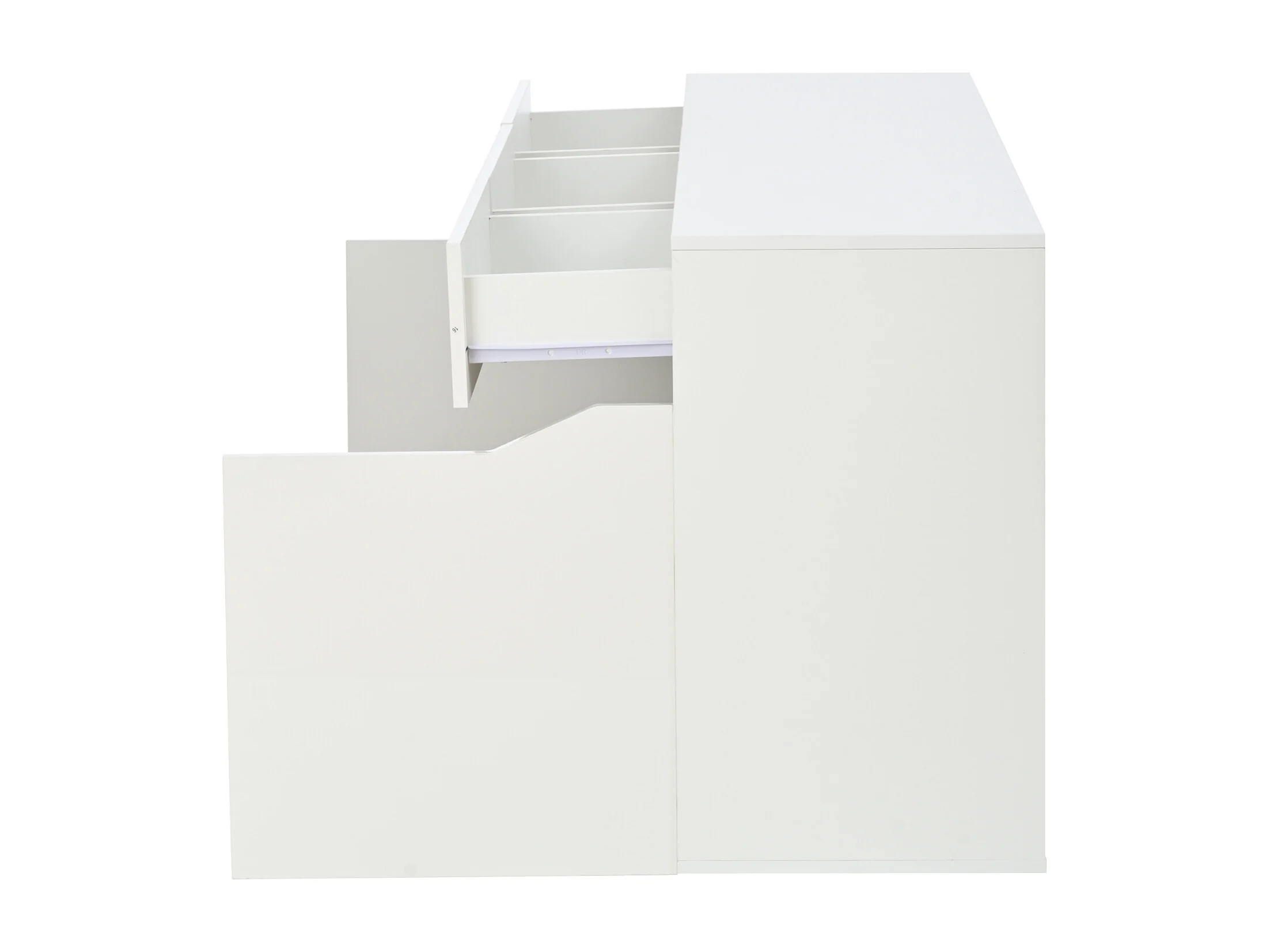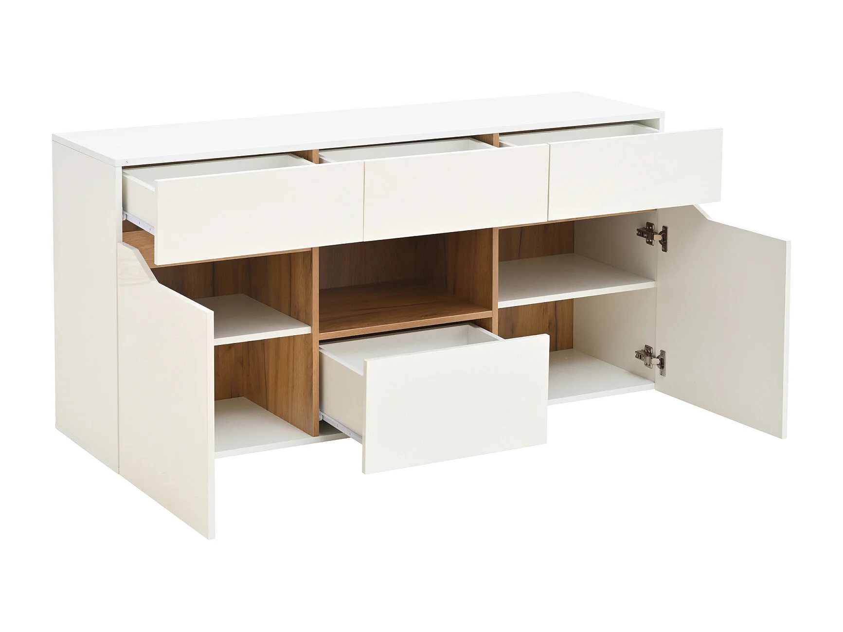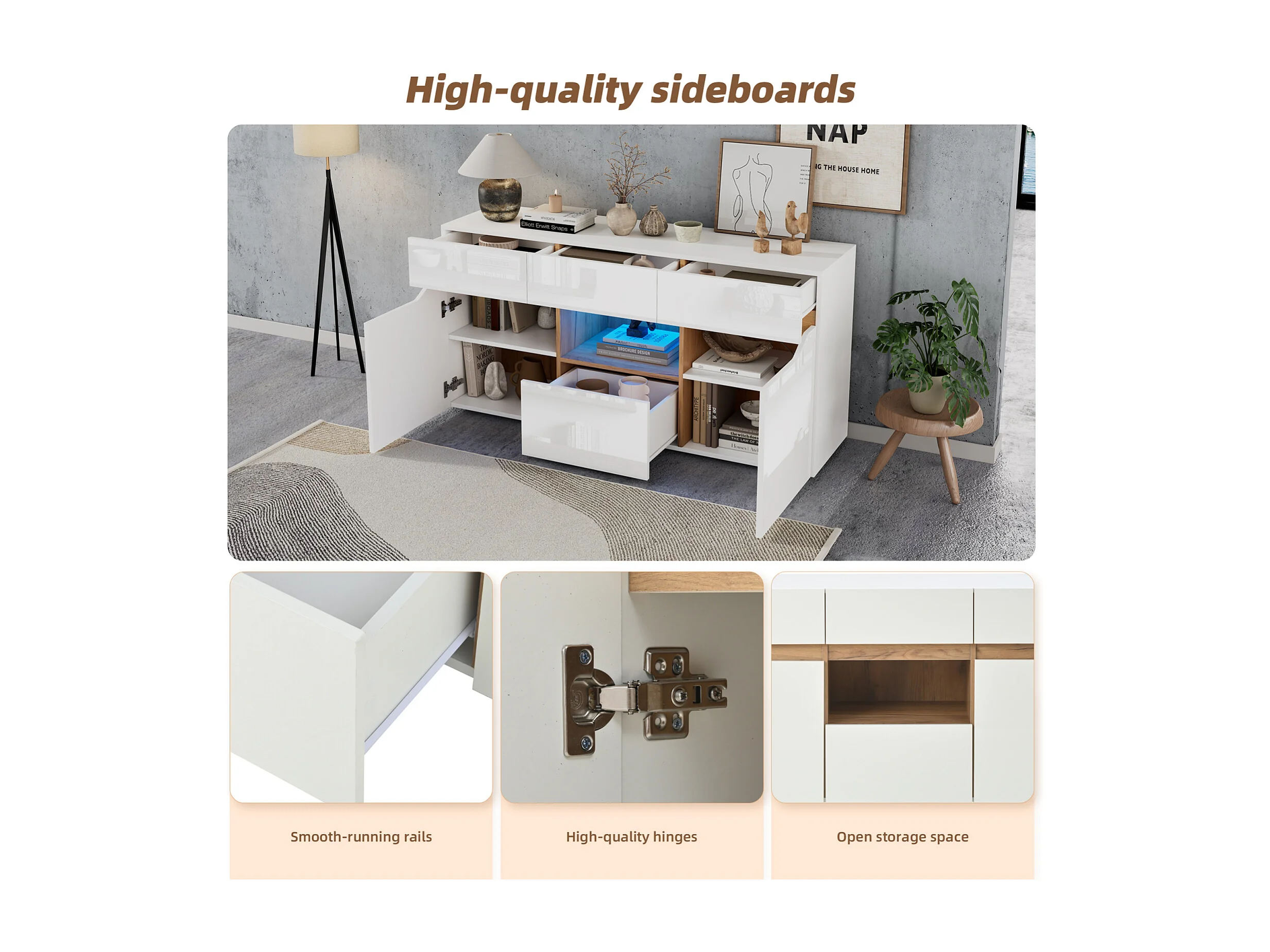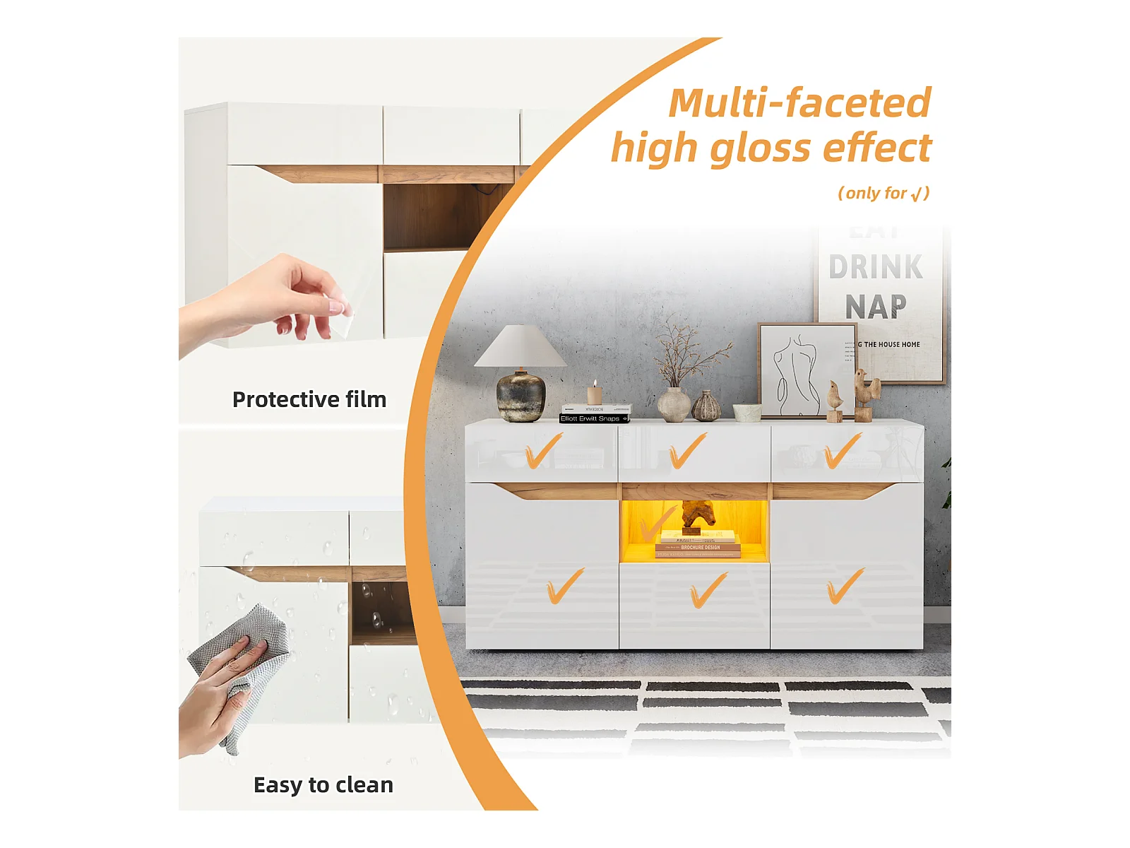 Aparador de salón brillante con 3 cajones + 2 puertas + LED - 140 x 40 x 65 cm - MDF - blanco