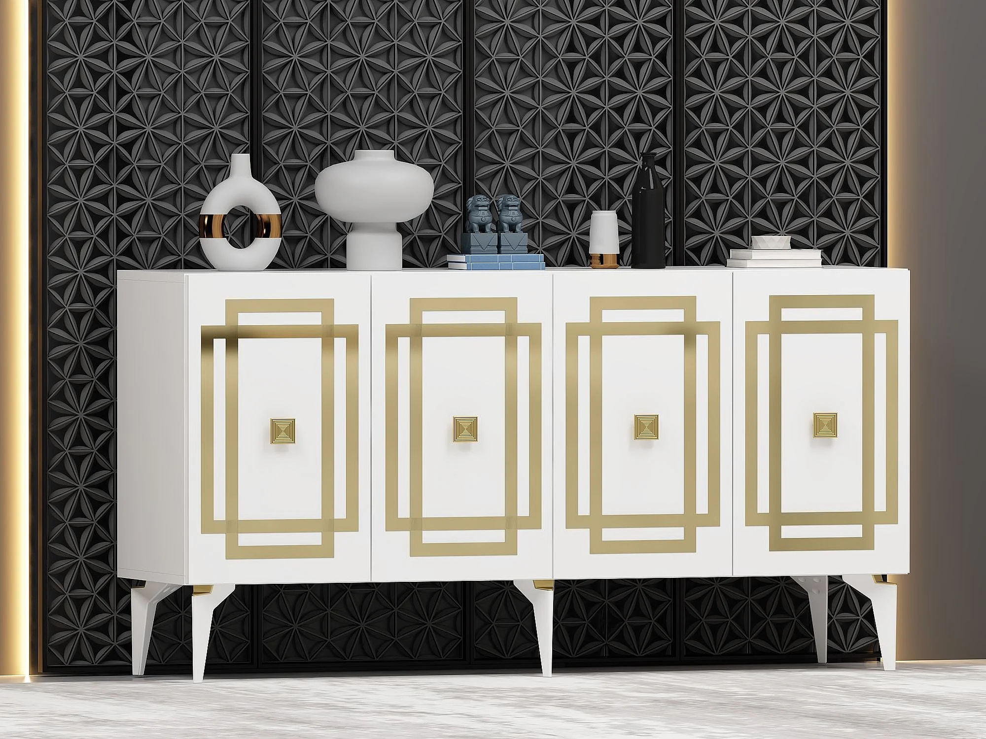 Aparador – 150 cm x 79 cm x 40 cm – Blanco y Dorado – Aglomerado