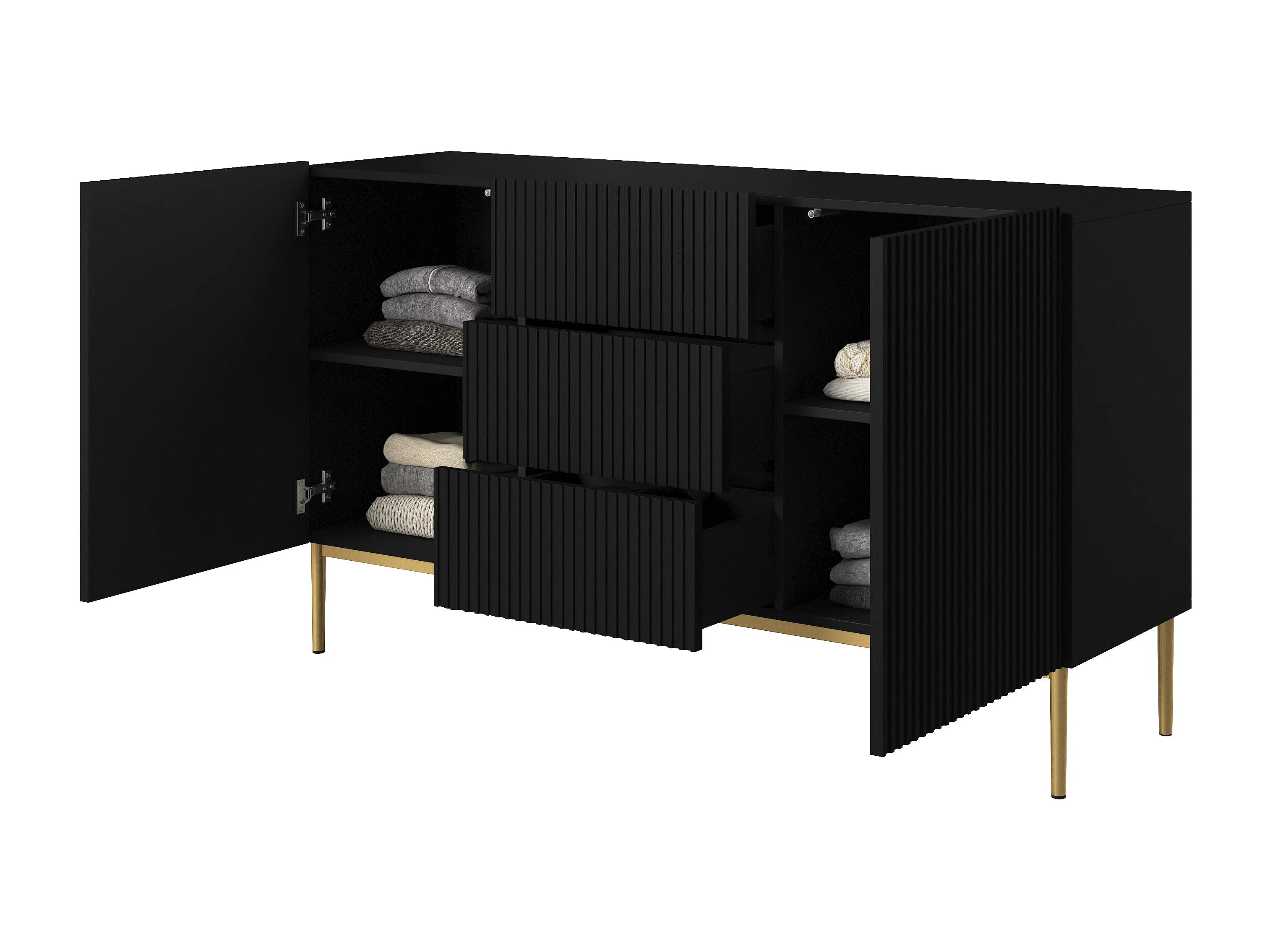 Aparador 2 puertas 3 cajones centrales negro con pie de metal negro 150x45 cm