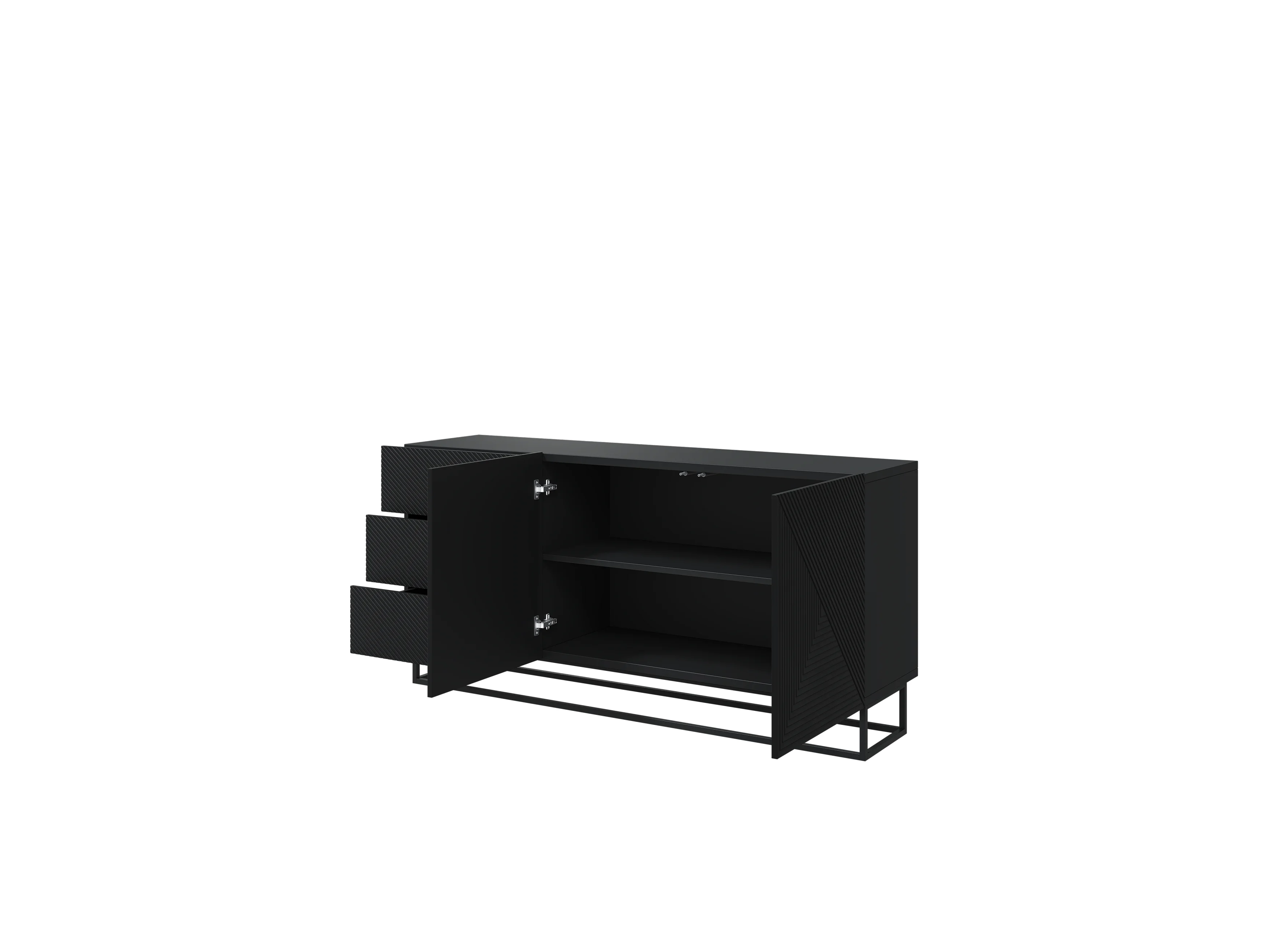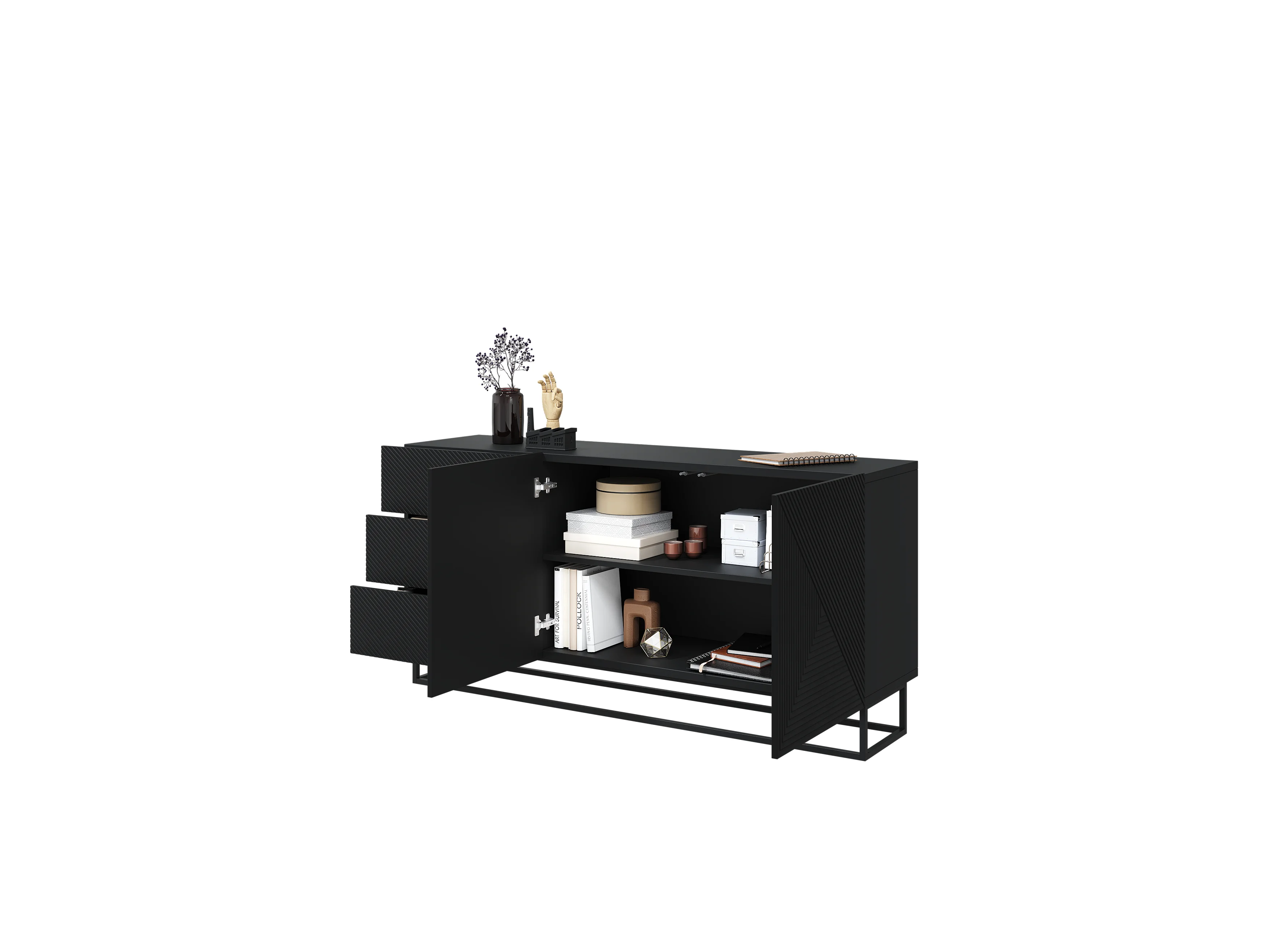 Aparador 2 puertas 3 cajones negro en madera laminada 167x43 cm