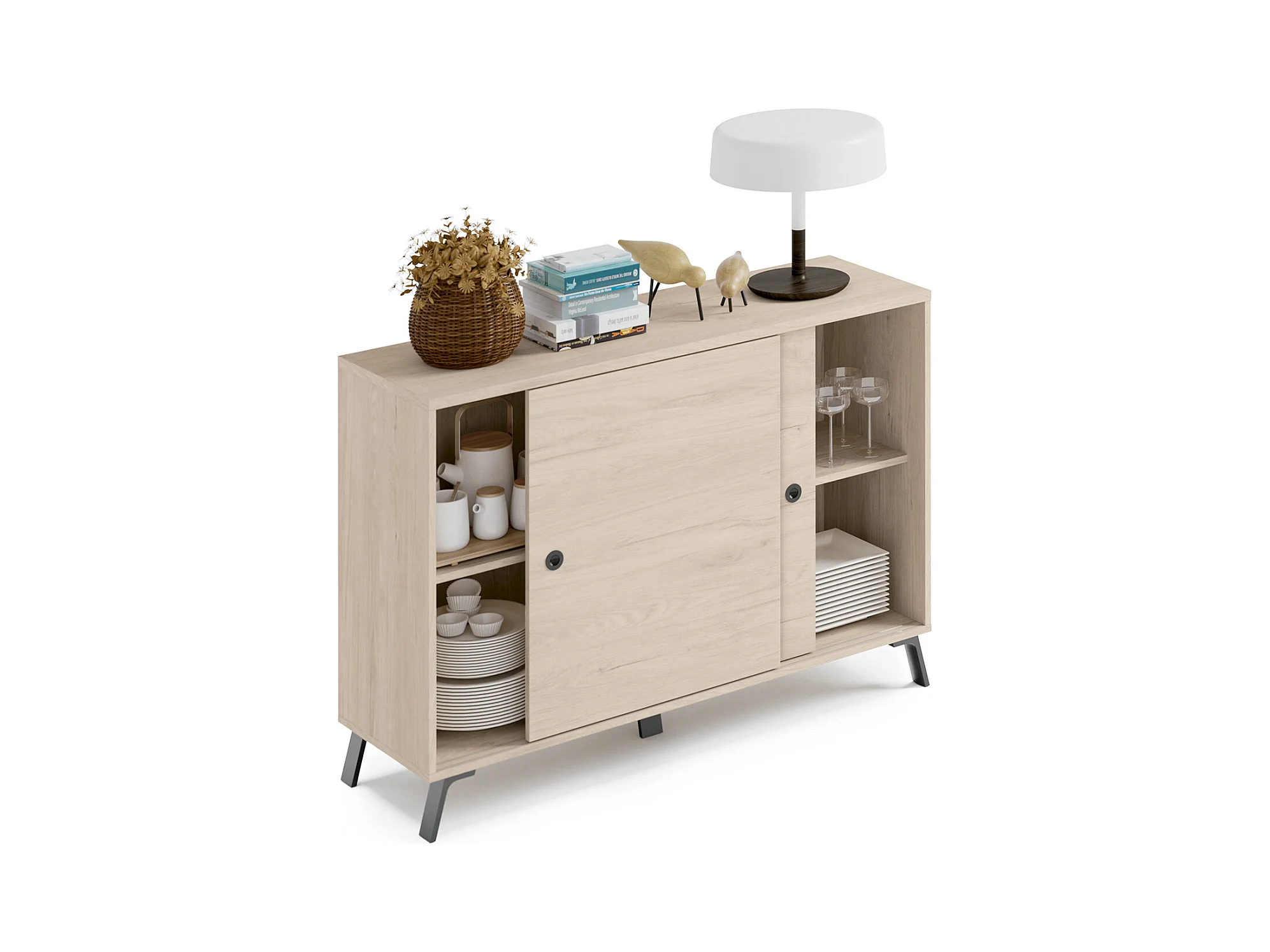 Aparador 2 puertas color efecto madera - Altura 87 x Longitud 120 x Profundidad 40 cm