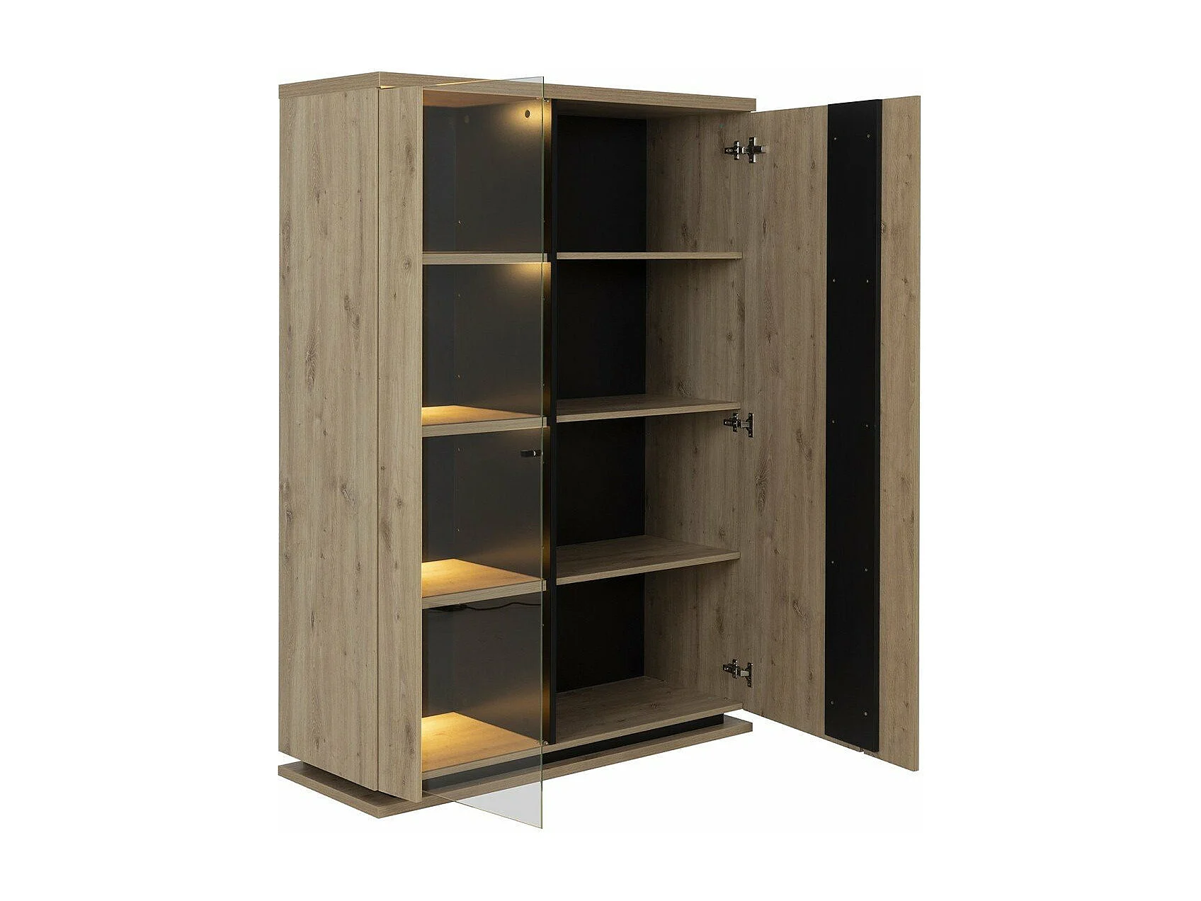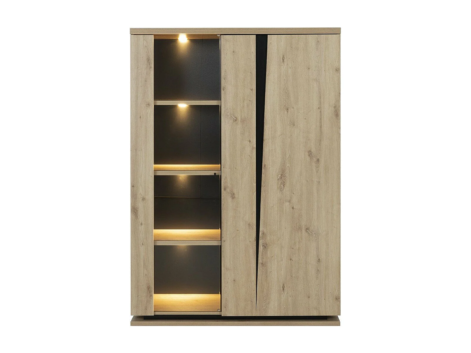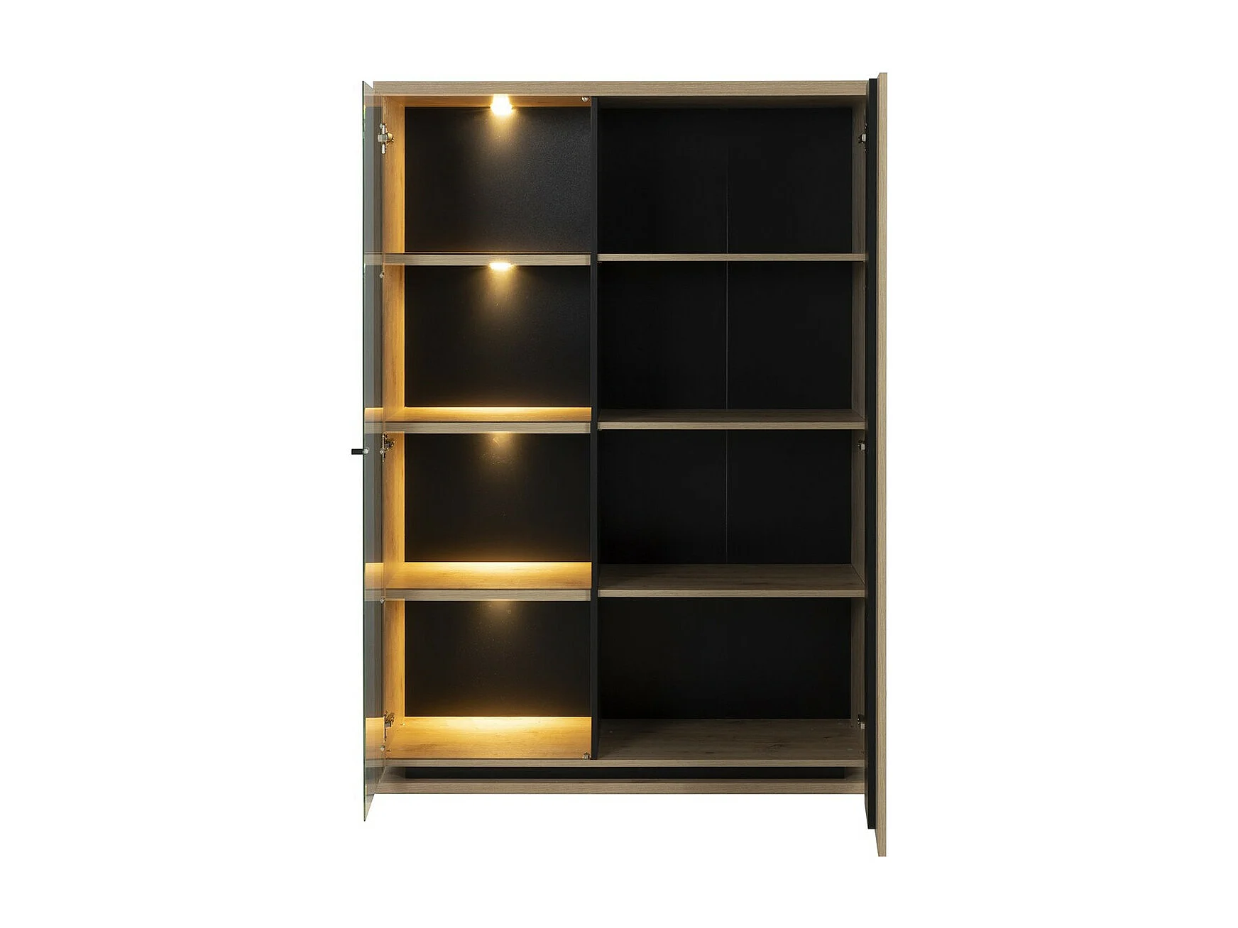 Aparador 2 puertas con vitrina e iluminación - Acabado roble y negro