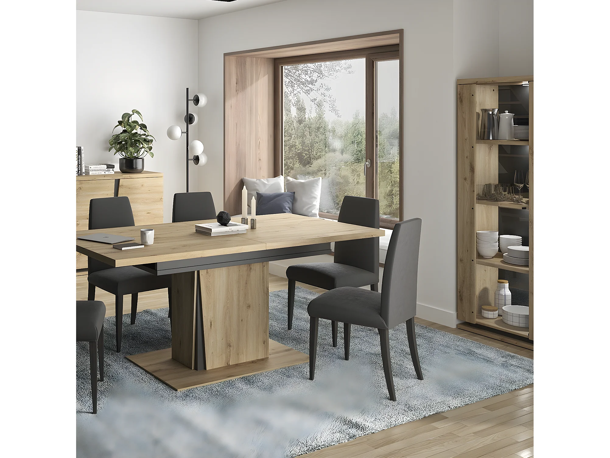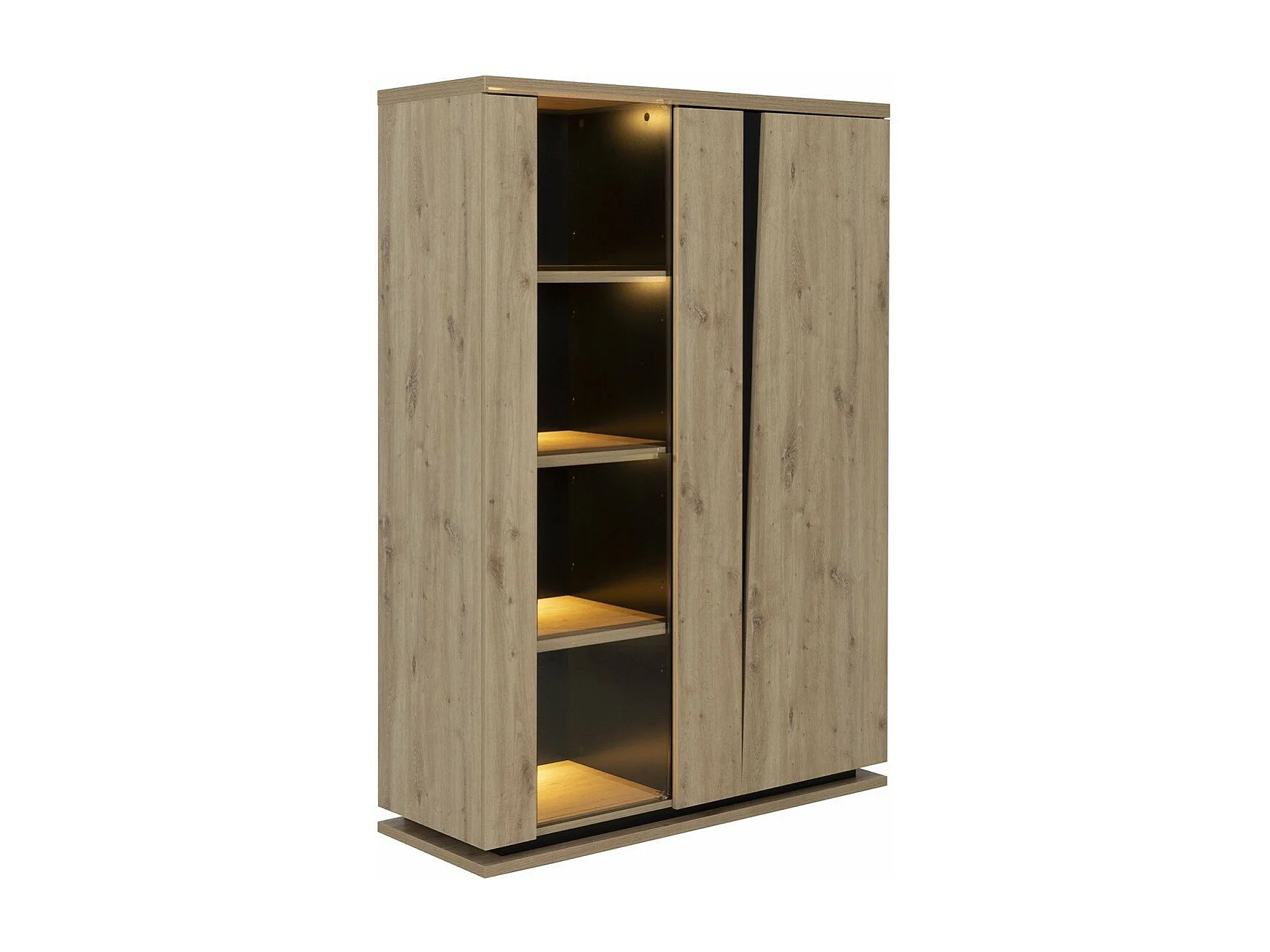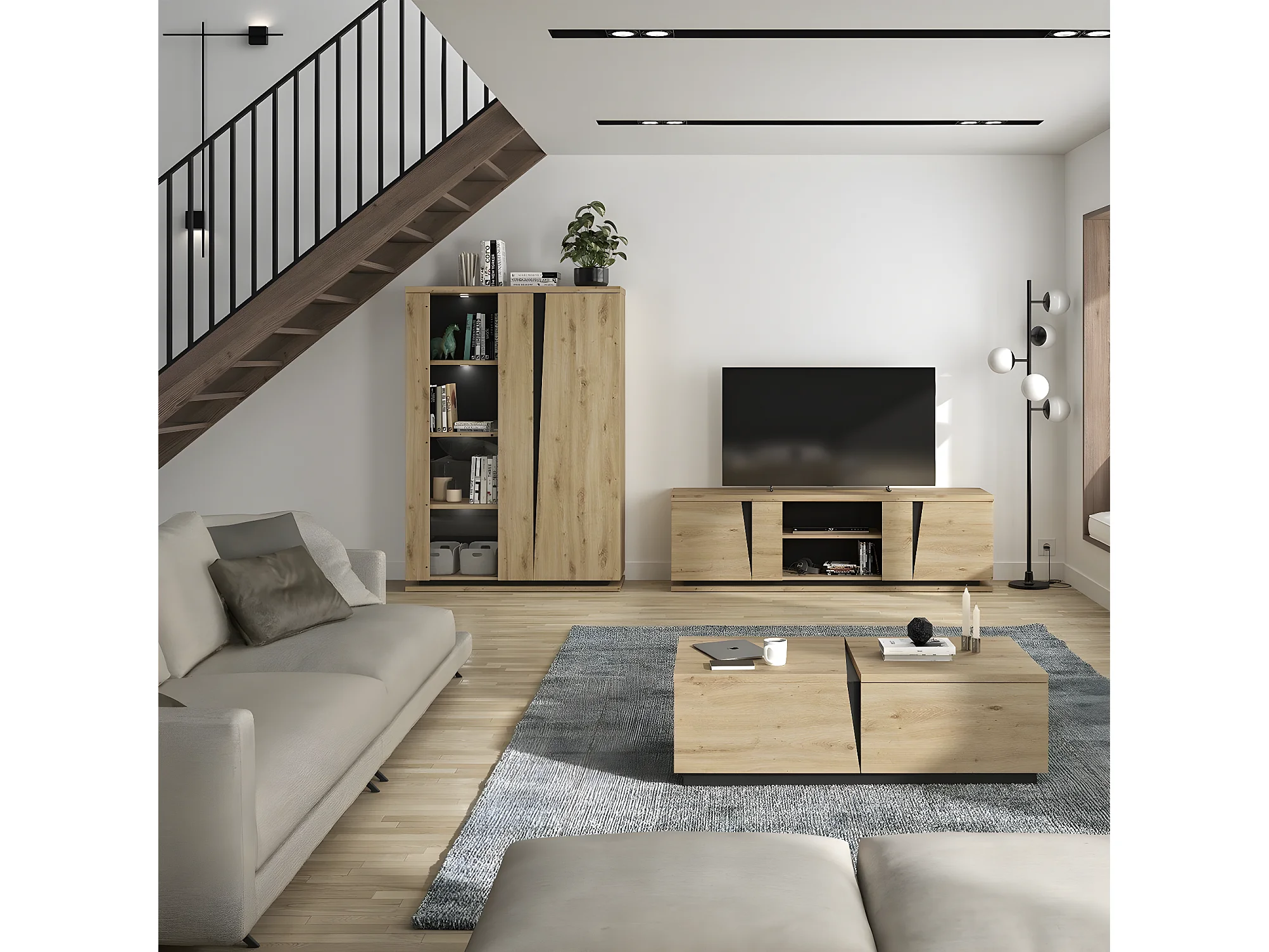 Aparador 2 puertas con vitrina e iluminación - Acabado roble y negro