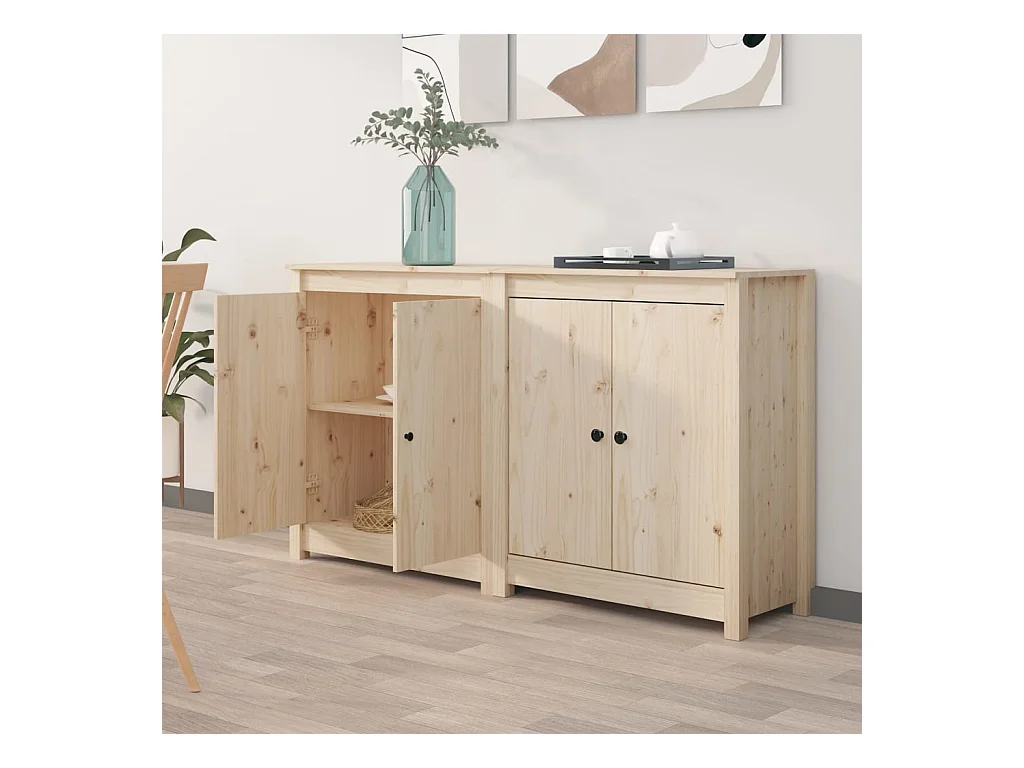 Aparador 2 uds de madera maciza de pino 70x35x80 cm ES95041