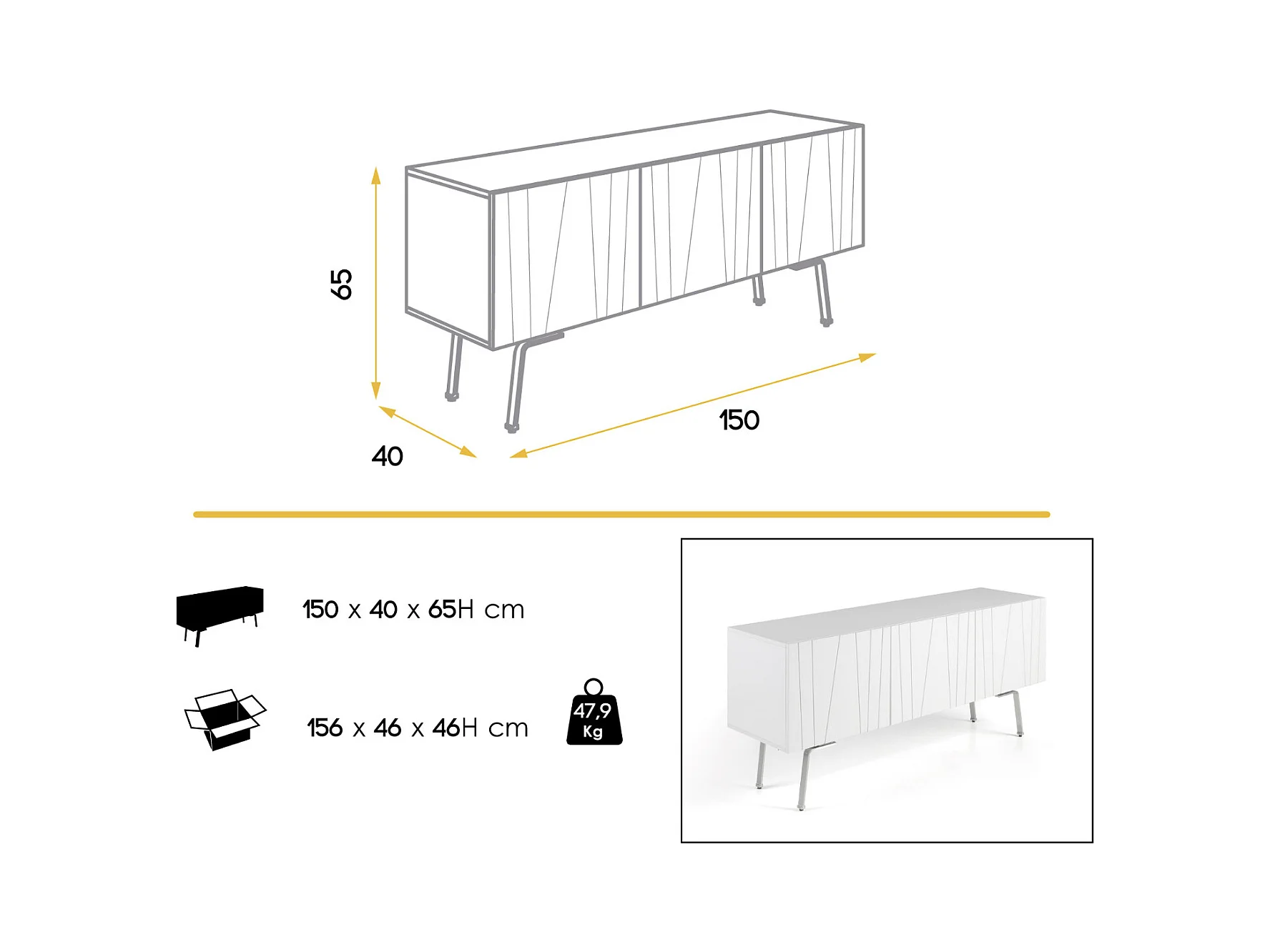 Aparador 3 puertas madera lacada blanca Valentin 150 cm