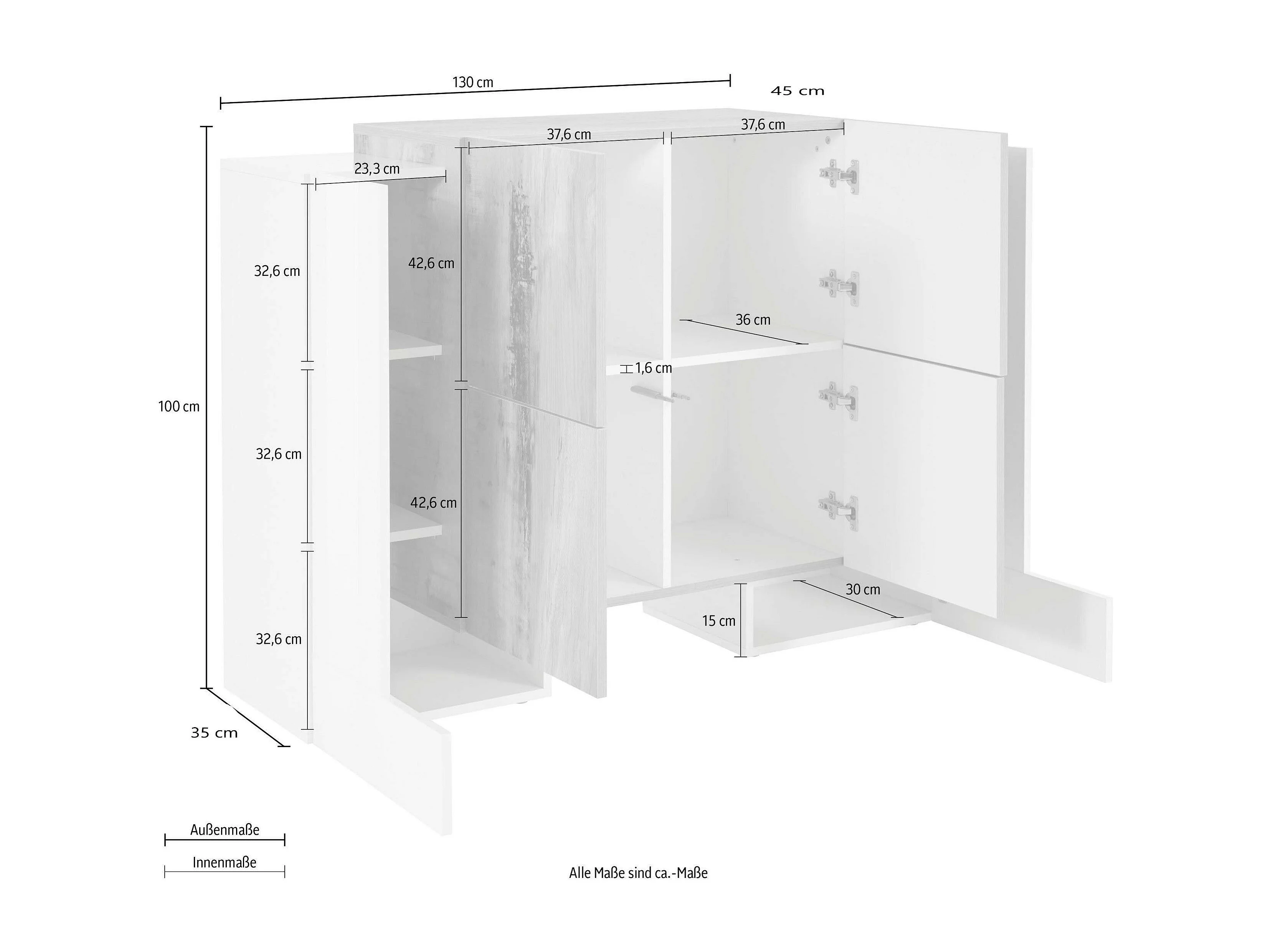 Aparador Ferdore 103, Roble de lefkada|Pino Anderson, 87x130cm, Número de puertas: 343cm