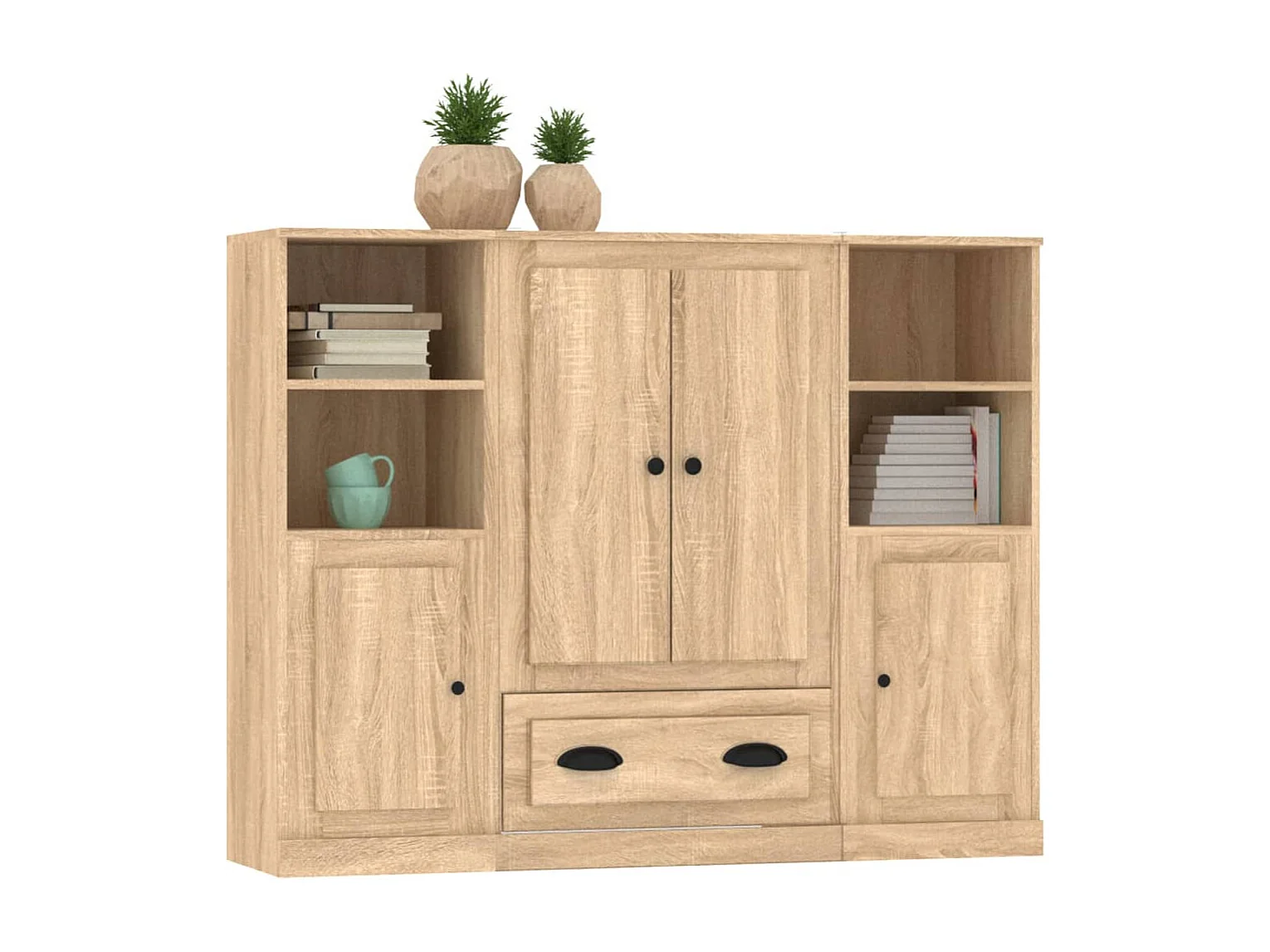 Aparador alto 3 piezas madera contrachapada roble Sonoma