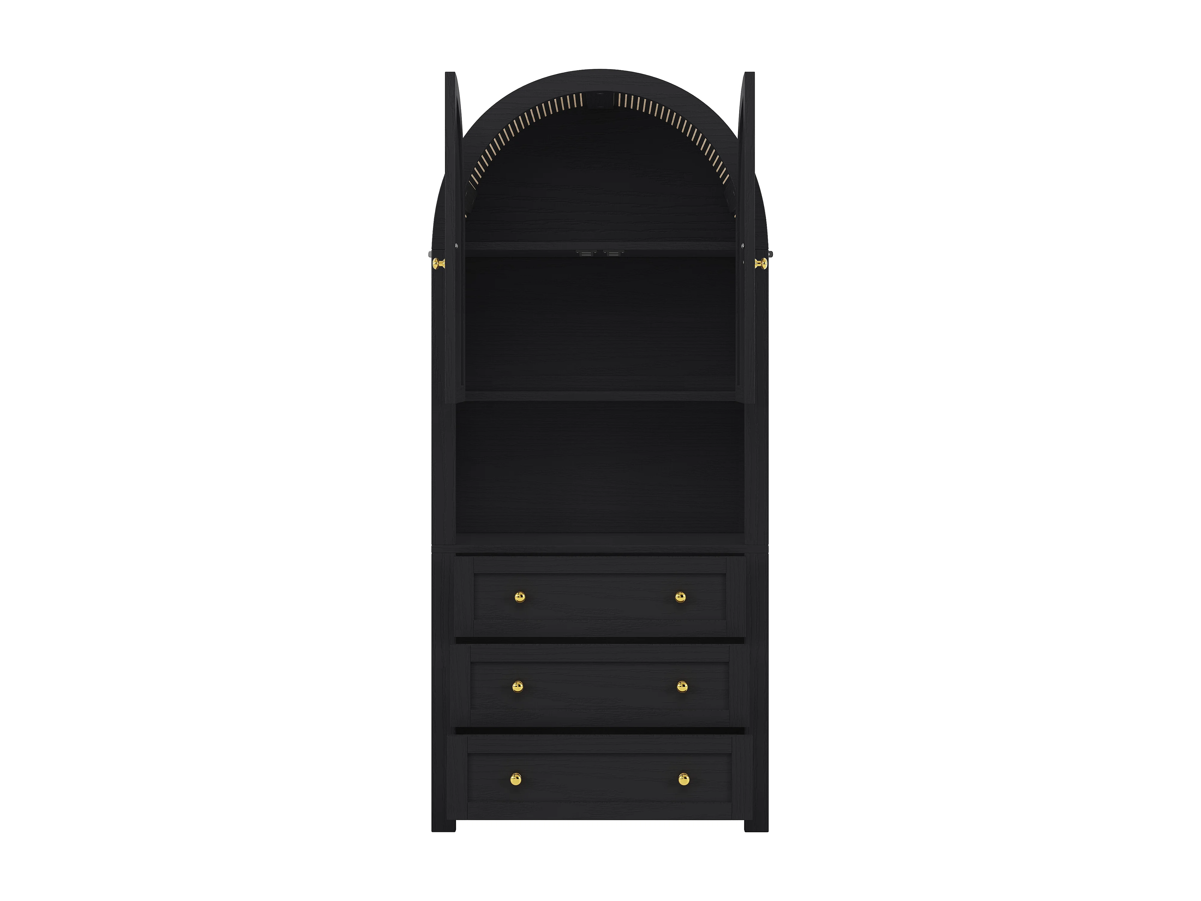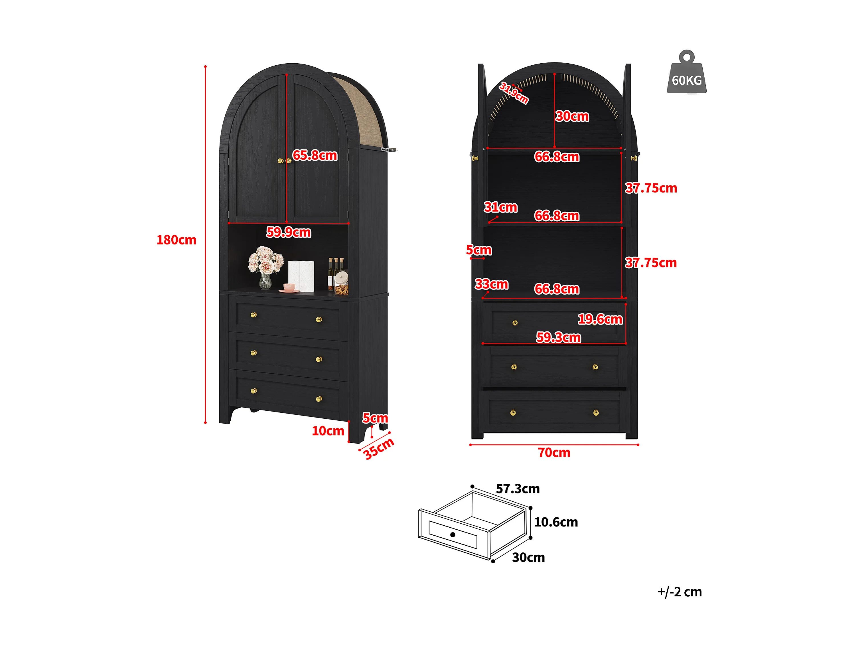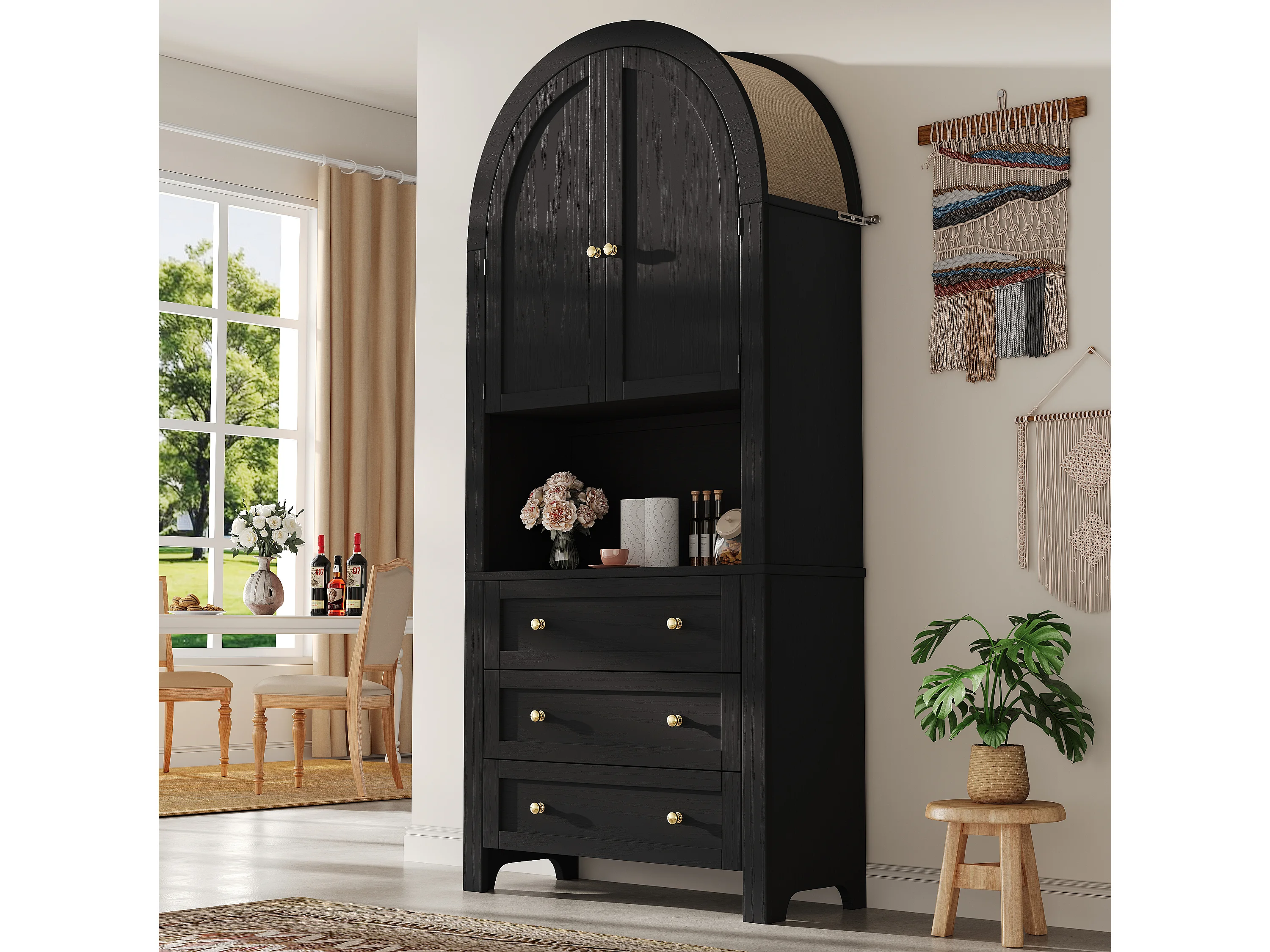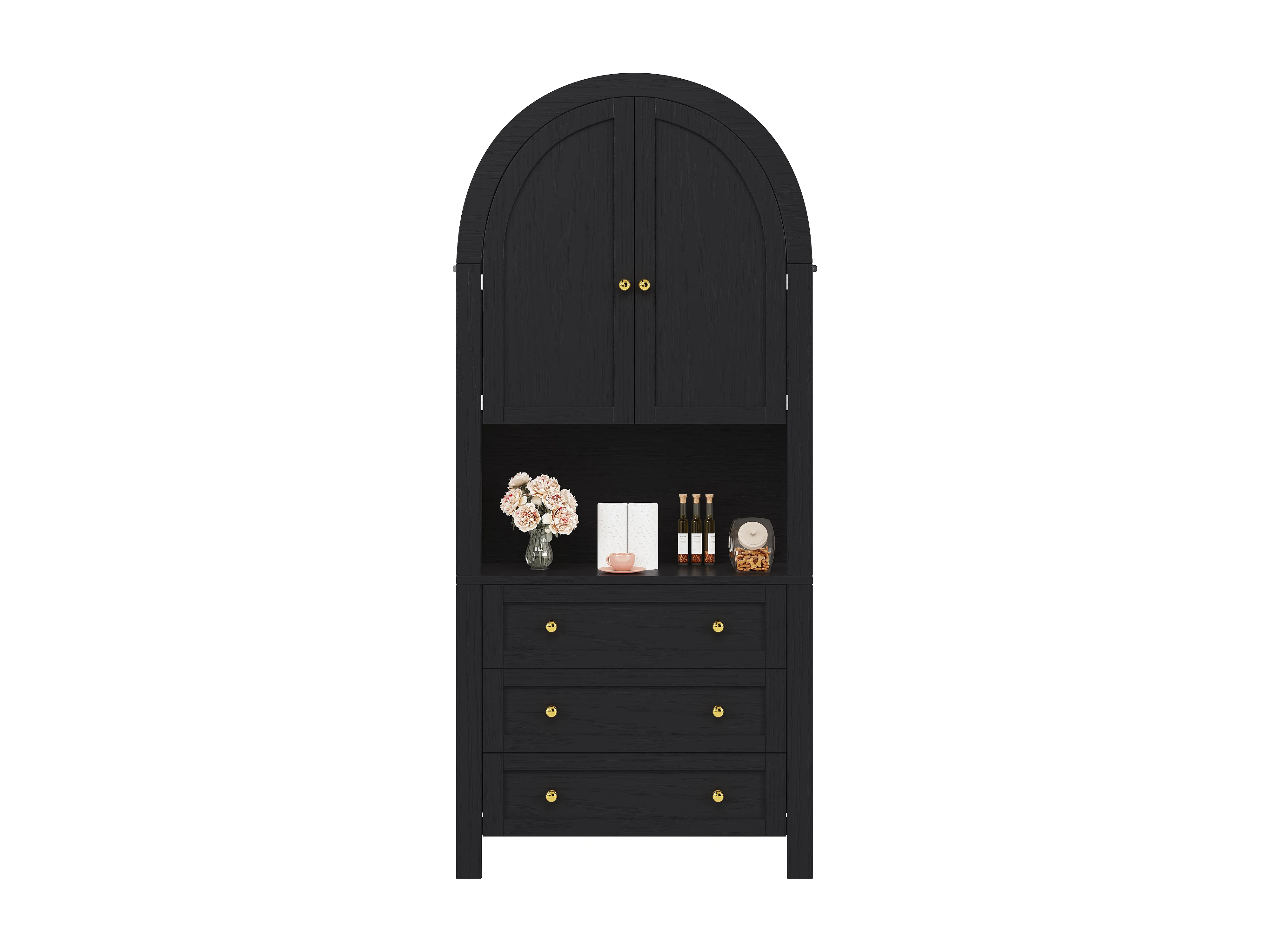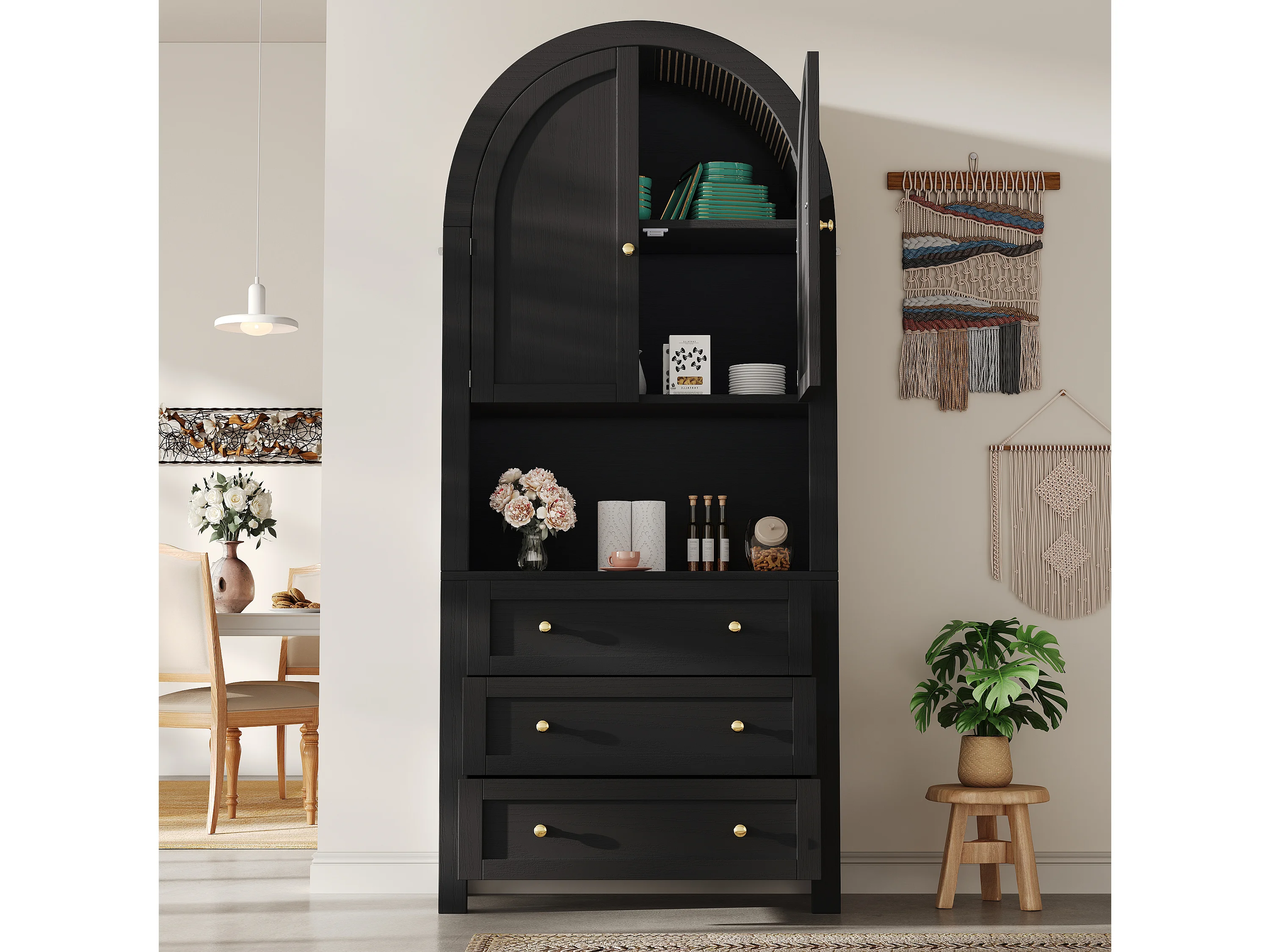 Aparador Alto Arqueado 70x35x180cm MDF Con Cajones y Estantes Salón Cocina Negro
