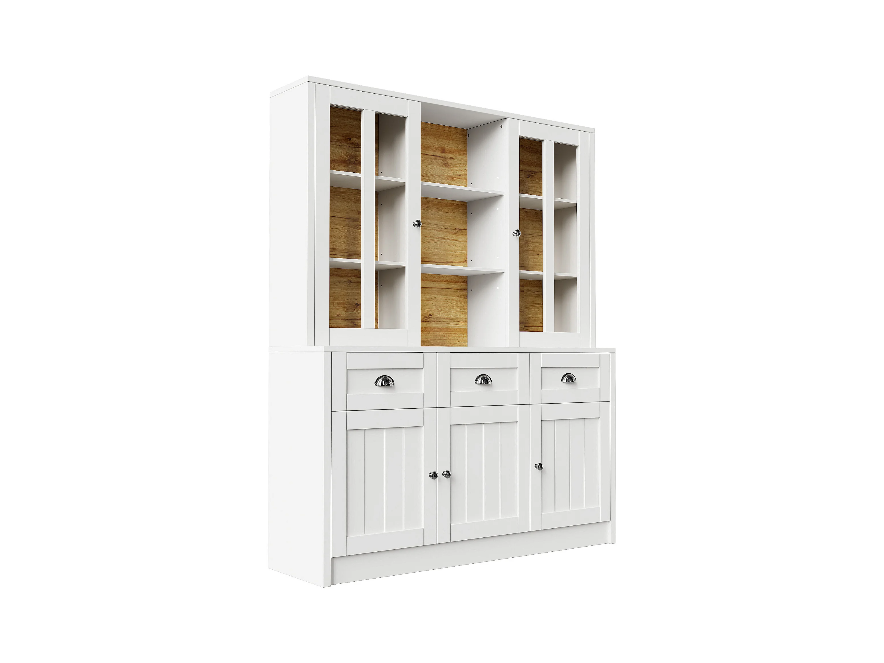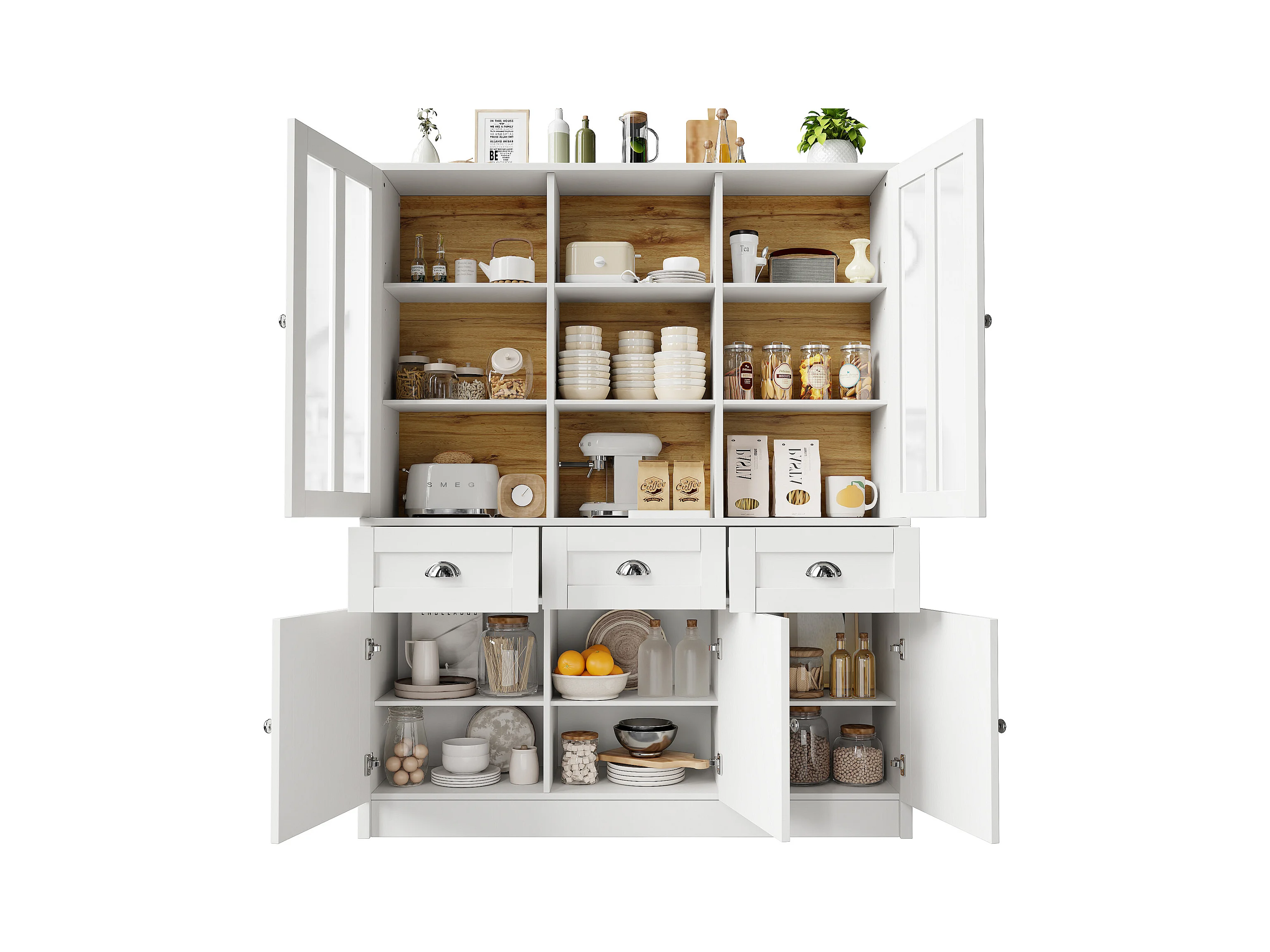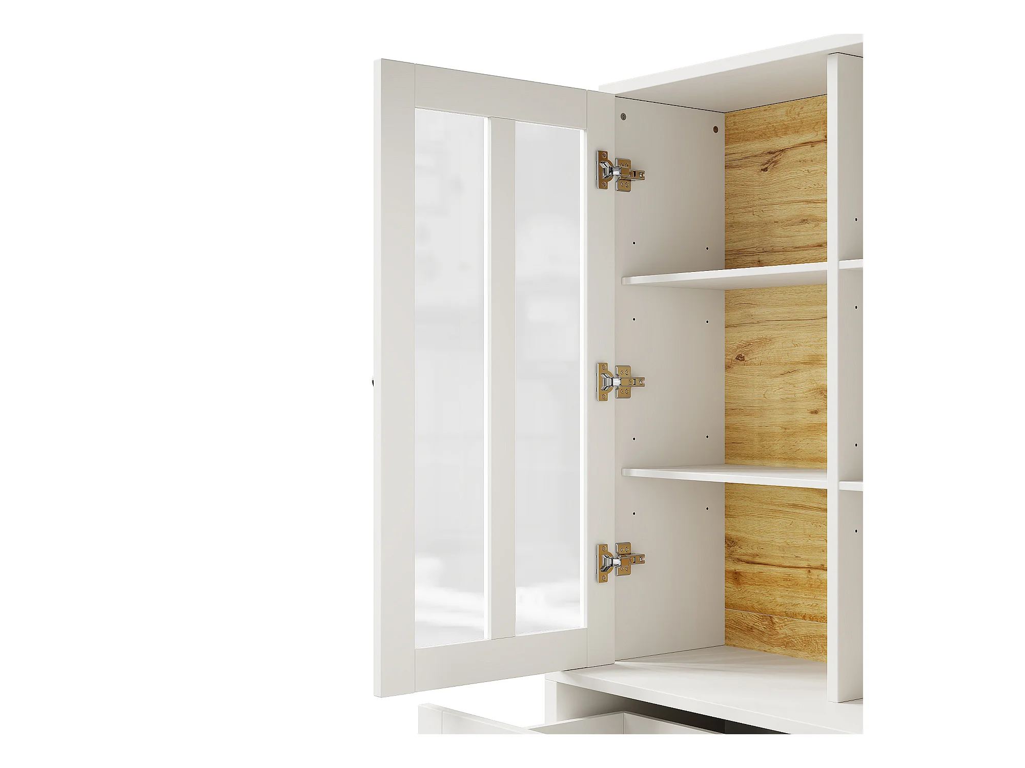 Aparador alto blanco - Mueble alto con 5 puertas y 3 cajones - almacenaje abierto - para cocinas y salones