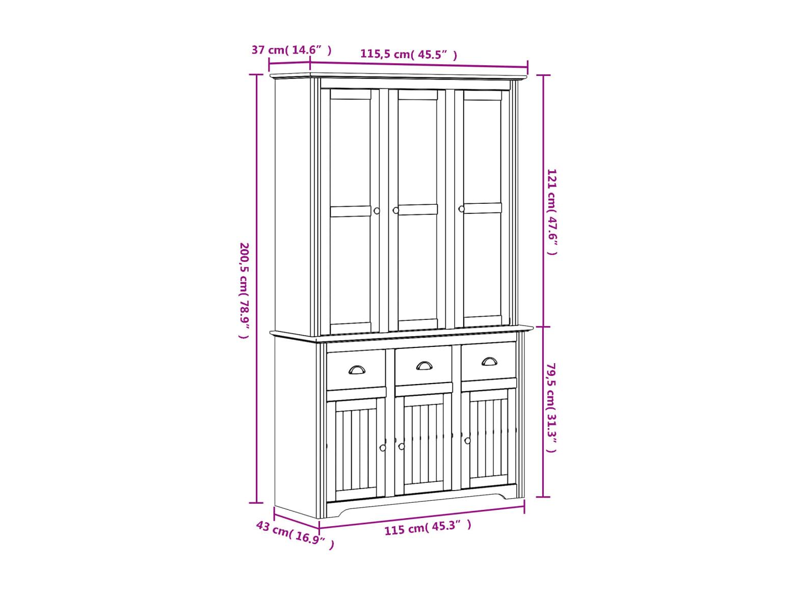 Aparador alto BODO madera maciza de pino gris 115,5x43x200,5 cm