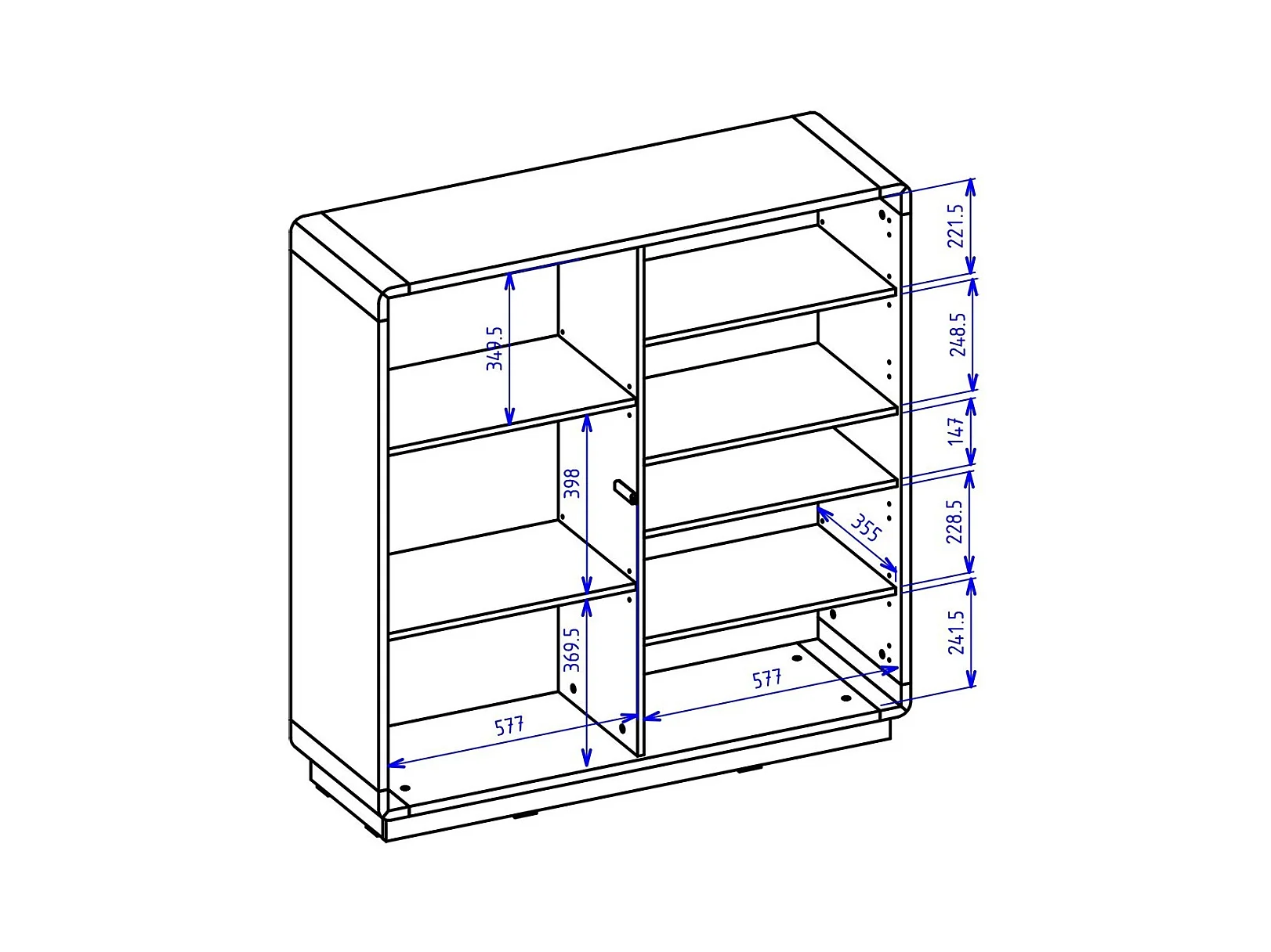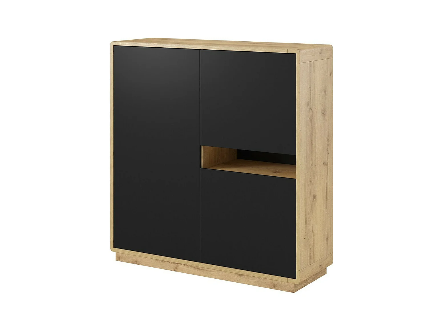 Aparador alto colección VILLA. Color roble y negro. 3 puertas y 1 nicho iluminado.