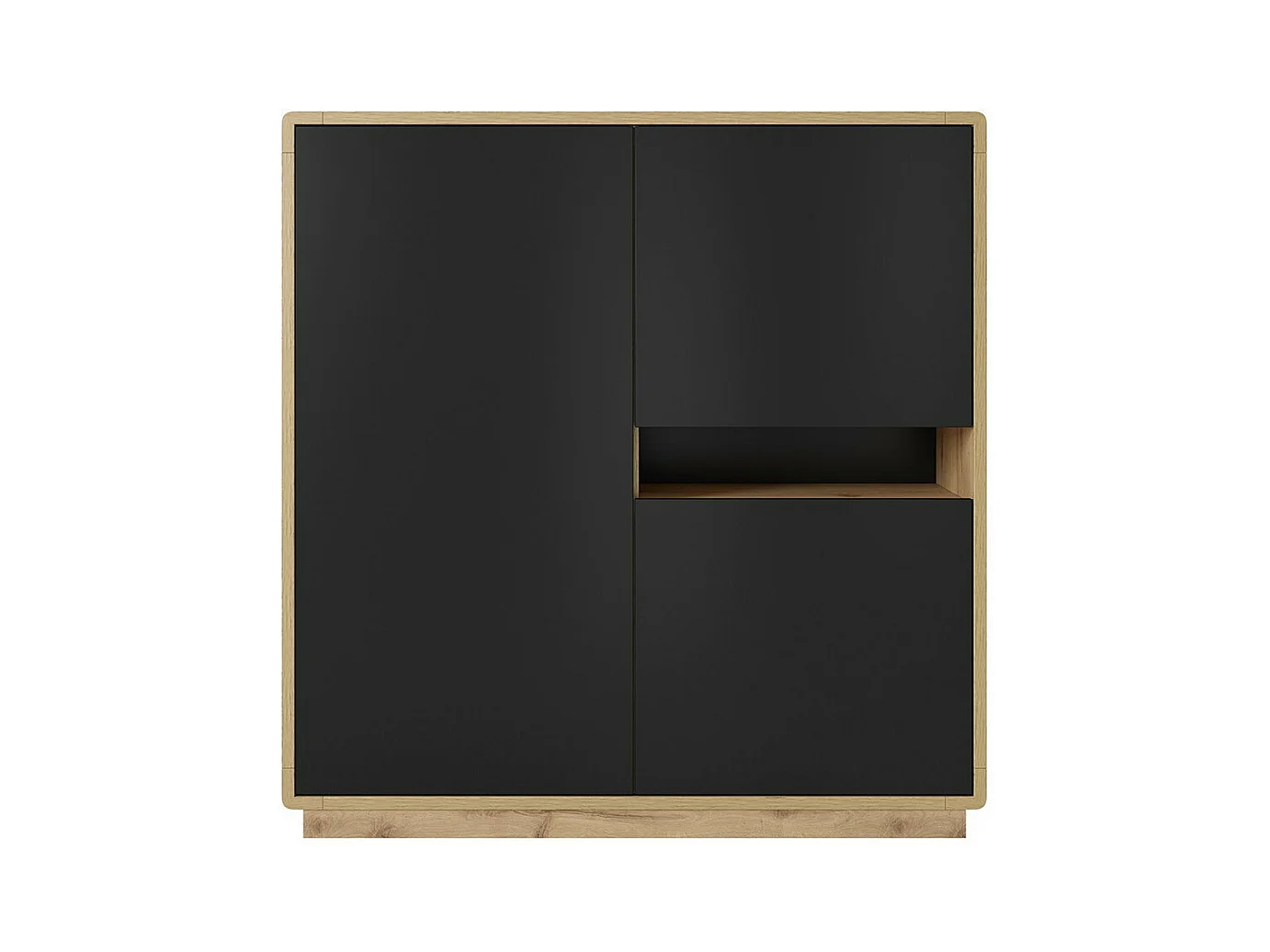 Aparador alto colección VILLA. Color roble y negro. 3 puertas y 1 nicho.