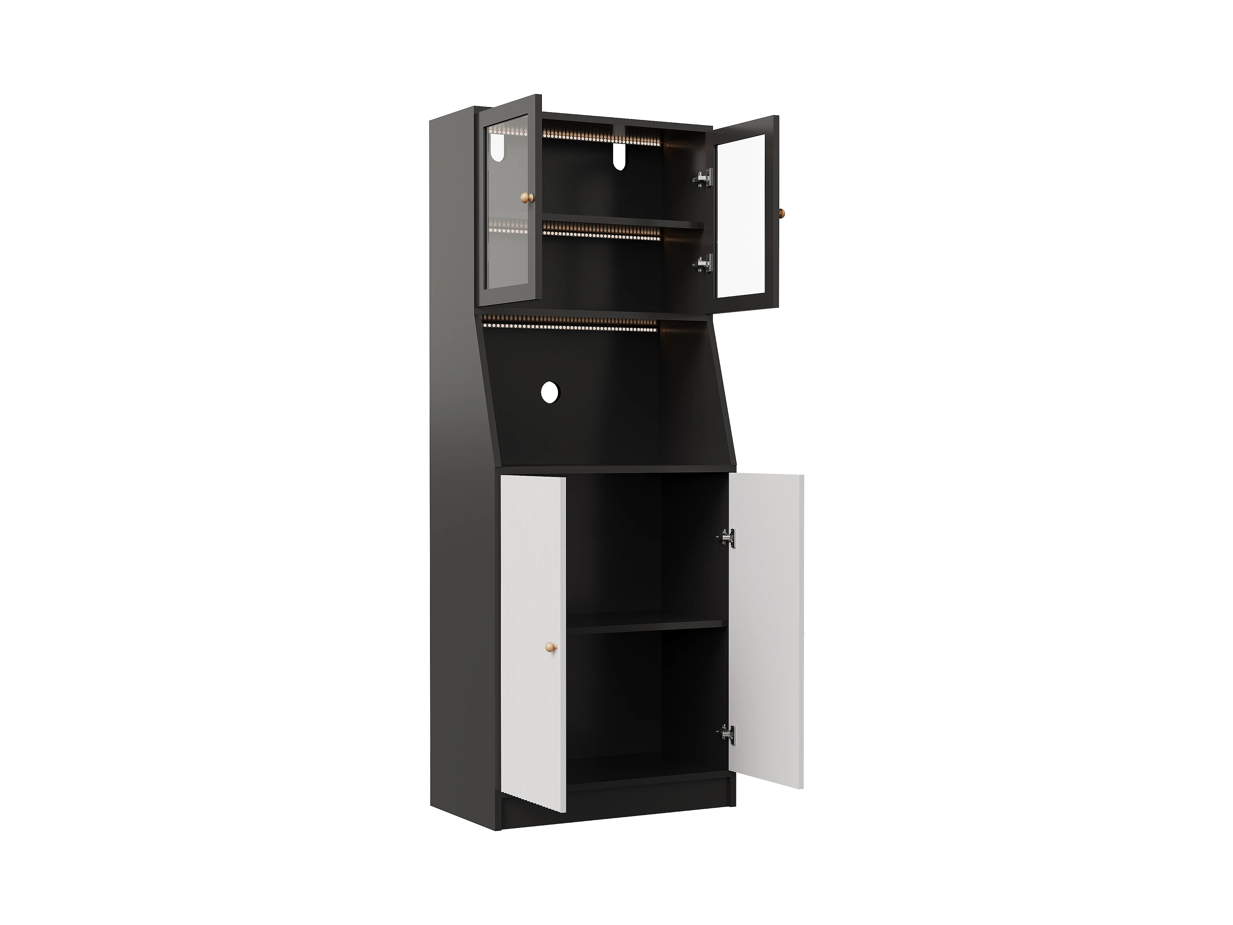 Aparador Alto, con Encimera y 4 Compartimentos, con LED, 40 X 70 X 180 Cm, Negro