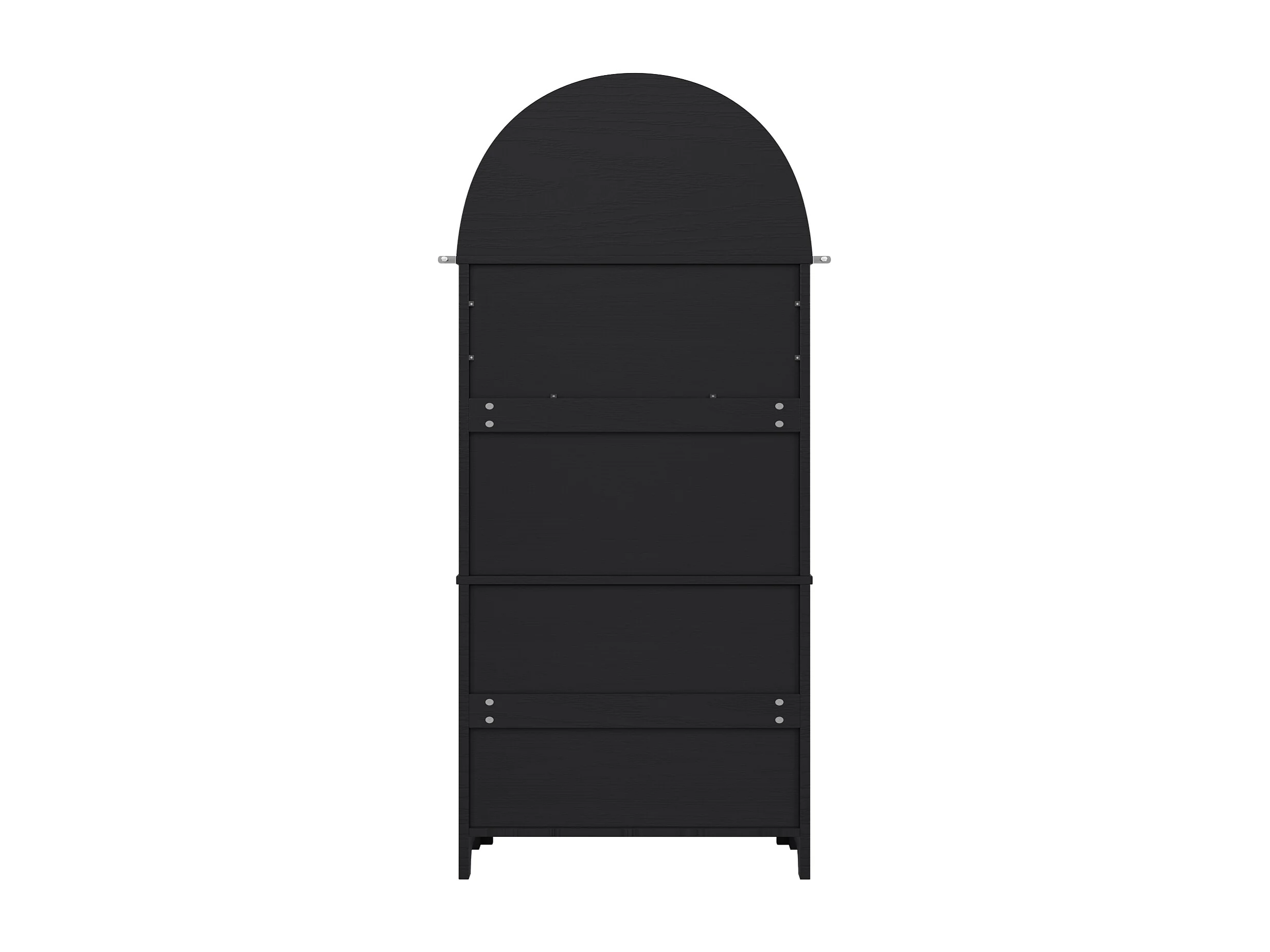 Aparador alto de almacenaje - 70 x 35 x 180 cm - arqueado con 3 cajones y 2 puertas - MDF - Negro