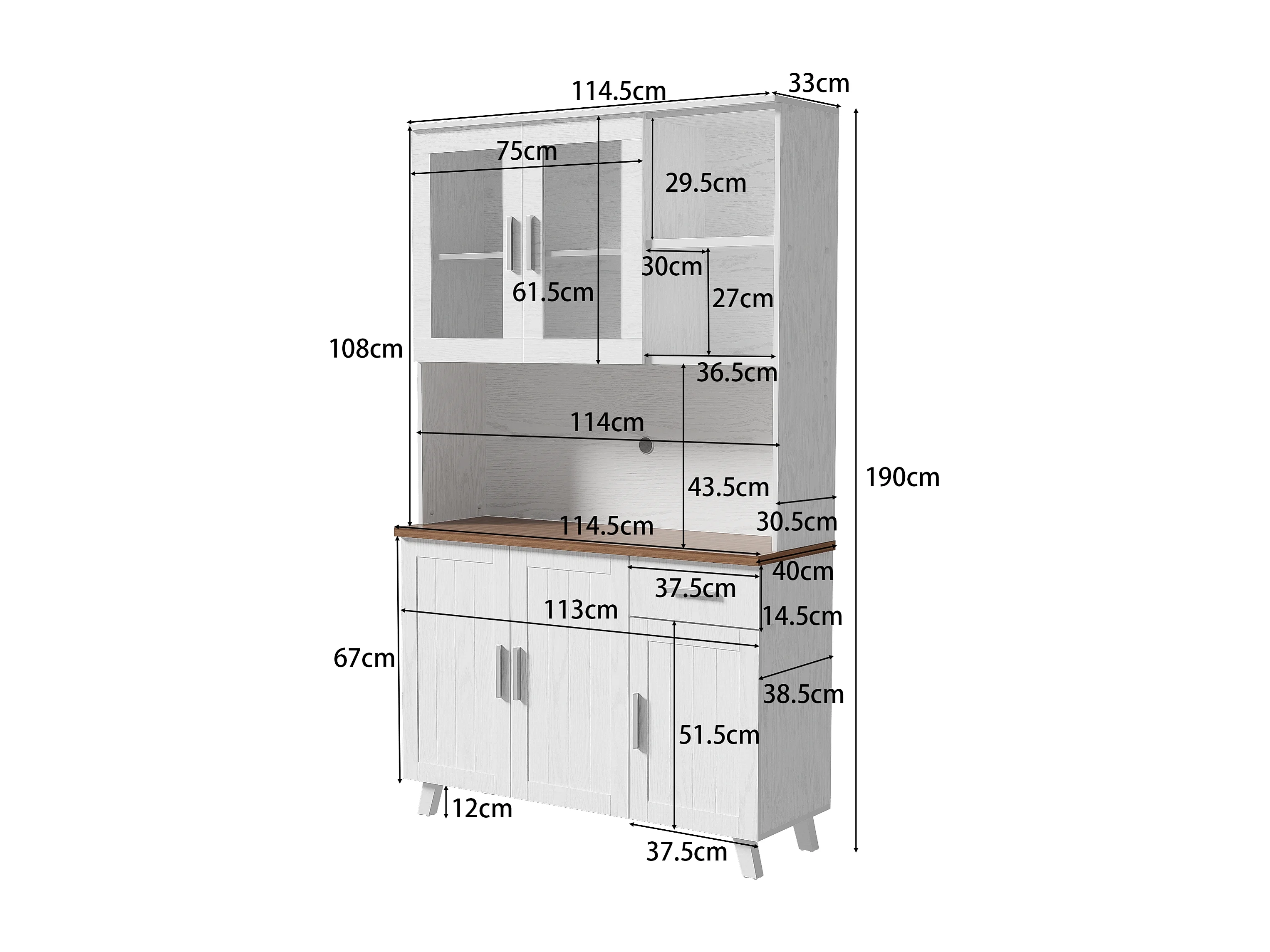 Aparador alto de madera blanco y marrón 114x40x190 cm con vitrinas y almacenaje para salón y comedor